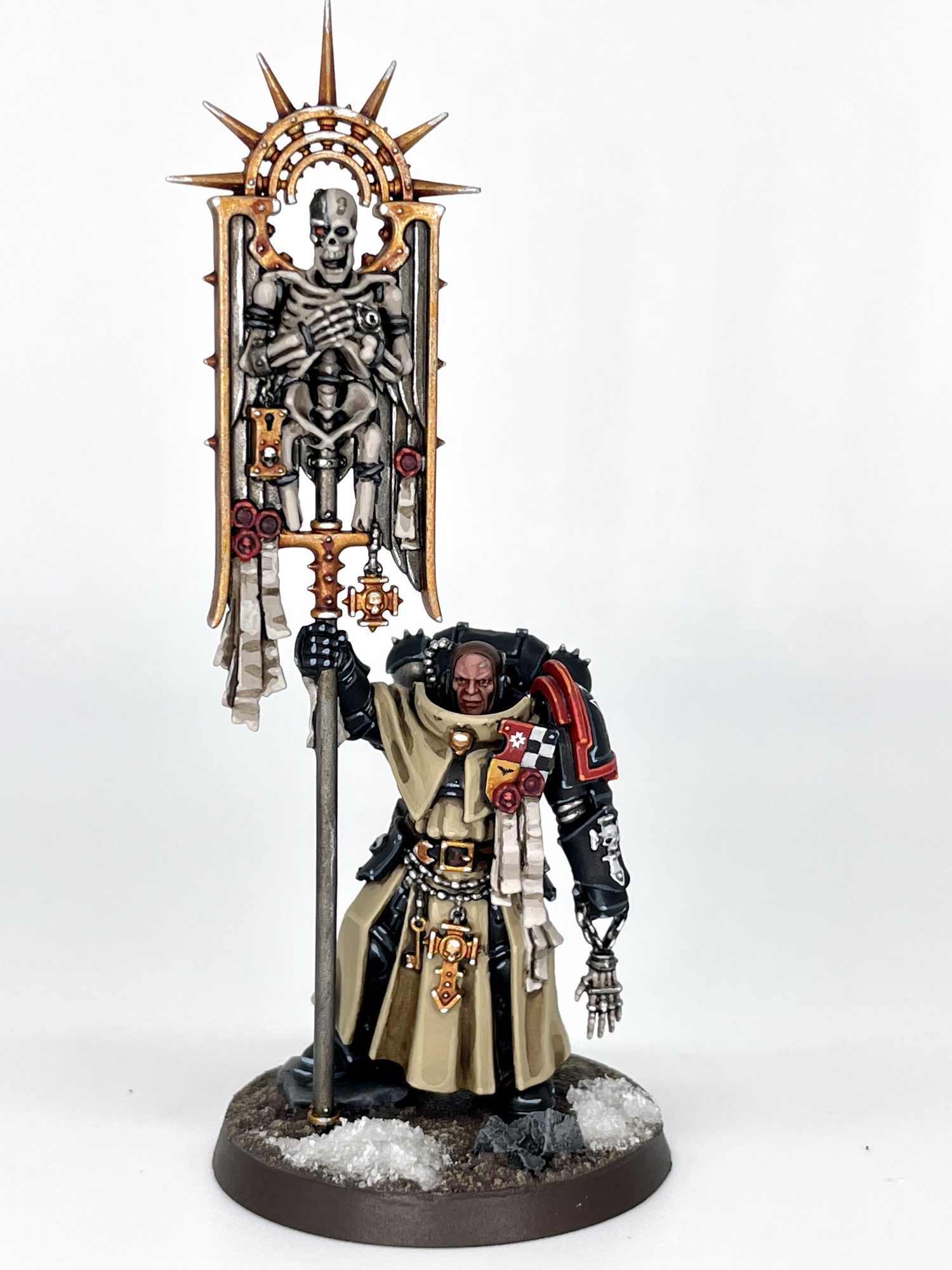 A listener had sent me Sergeant Castus, the battle-damaged Space Marine dude, many moons ago. A random dude with a chainsword was not going to make a difference in either my Ultramarines or Black Templars armies, both of which were more or less at capacity for Chainsaw Men. Instead, I took the opportunity to finally paint a Blood Raven. This chapter has been near and dear to me ever since I was a teenager playing