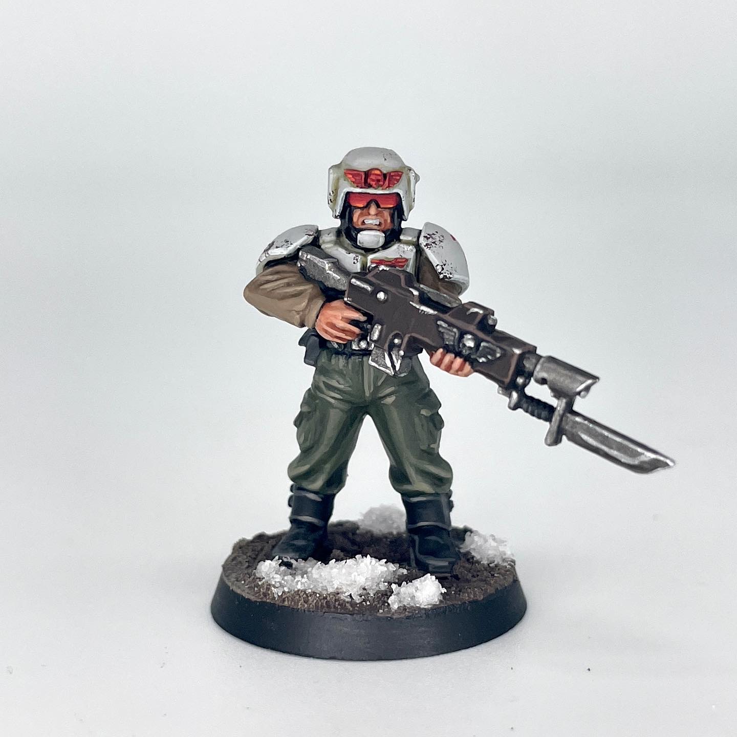 Lastly, I have the Catachan Power Couple above. I've had these models since they came out, overcome by the sheer novelty of Catachan miniatures sculpted after the Clinton administration. I mirrored the winter scheme from my test Cadian and I am quite pleased with the results. As for why these crop top-wearing bodybuilders would be in a winter environment is anybody's guess, but the Imperium isn't exactly known for sound logistics. These models were some of the most fun miniatures I painted all year, and if Catachans get a new range in the future, I will be in some degree of trouble.