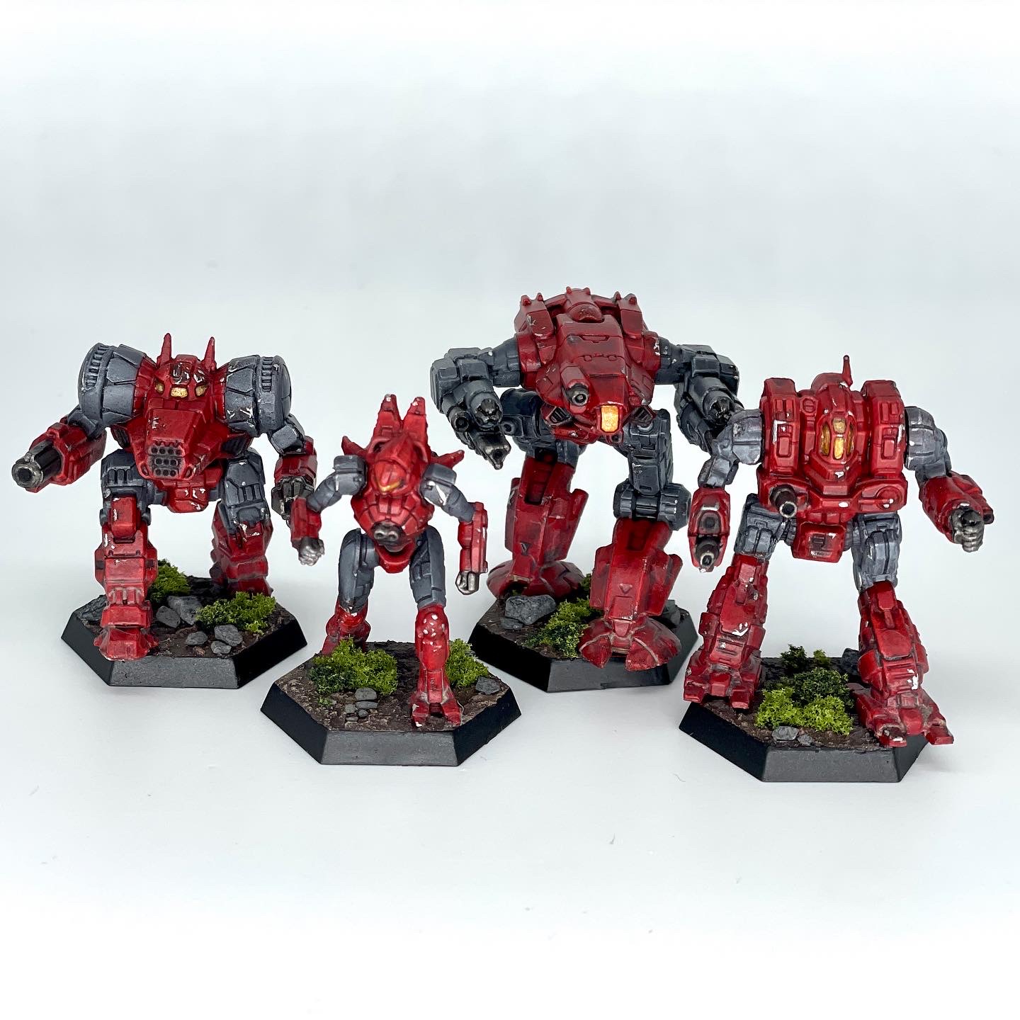 Battlemechs have become my new palate cleansers. Quick to paint up, with few extraneous details and little cleanup necessary, they let me make meaningful progress in a short burst of time. Video rendering? Time for a drybrush. Work meeting? I can absolutely get some washes down. Half an hour before I need to go to do something? That's enough time to block in some colors. By painting a lance at a time I can give the part of my brain that likes seeing numbers go up the rush of chemicals it needs to feel good about itself. I've especially taken to painting them after laborious models as it feels good to knock out a unit's worth of models in 2 or 3 hours.
