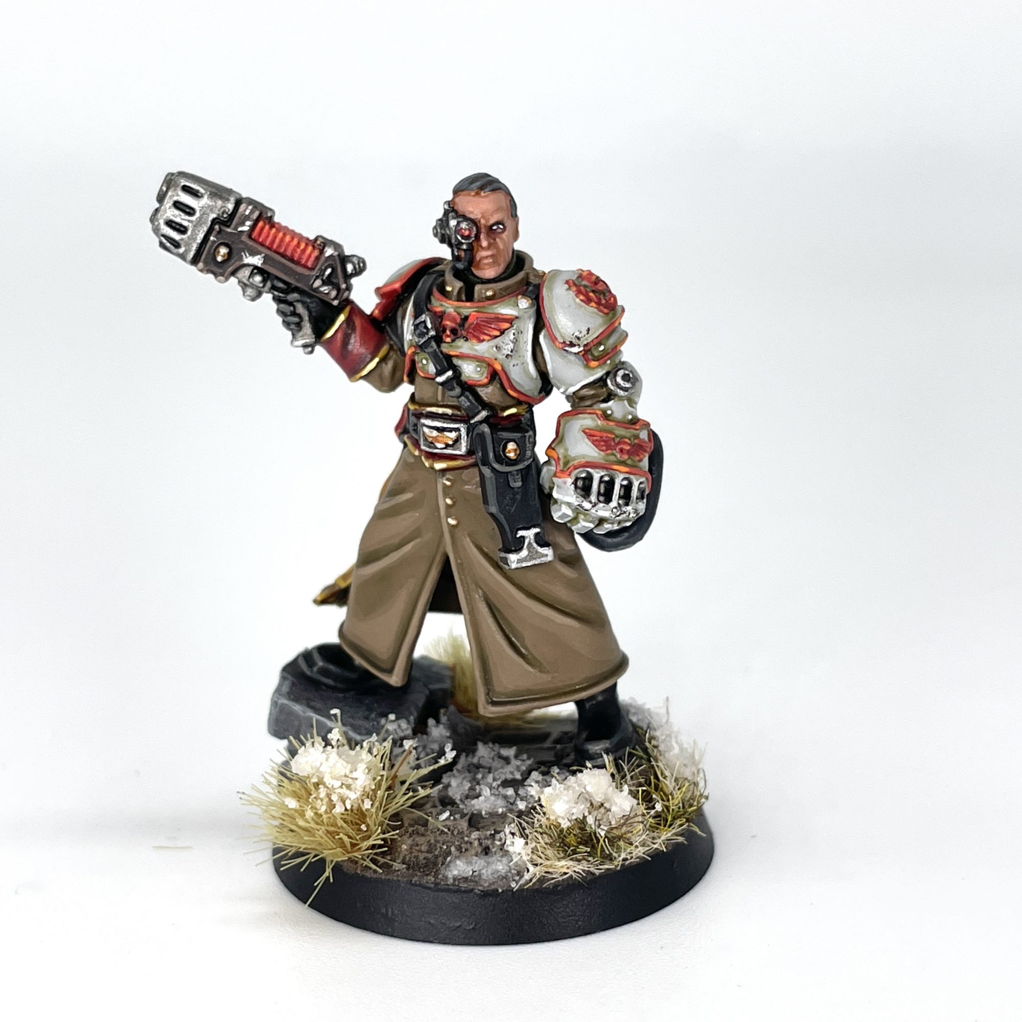 As has been alluded to in previous retrospectives, an urge occasionally possesses me to convert a little dude and paint him, and that wriggling feeling won't leave my brain until said little dude is in my hand. This Lieutenant was one of those. Oodles of Assault Intercessors arrived via Imperium during my review of that series, and it got to the point where I could just start using leftover bodies to make cool characters. What genuinely excited me most about this dude was his heraldry, which repeats covering his left pauldron. You can kinda see it here, but there's a turnaround on my Instagram.