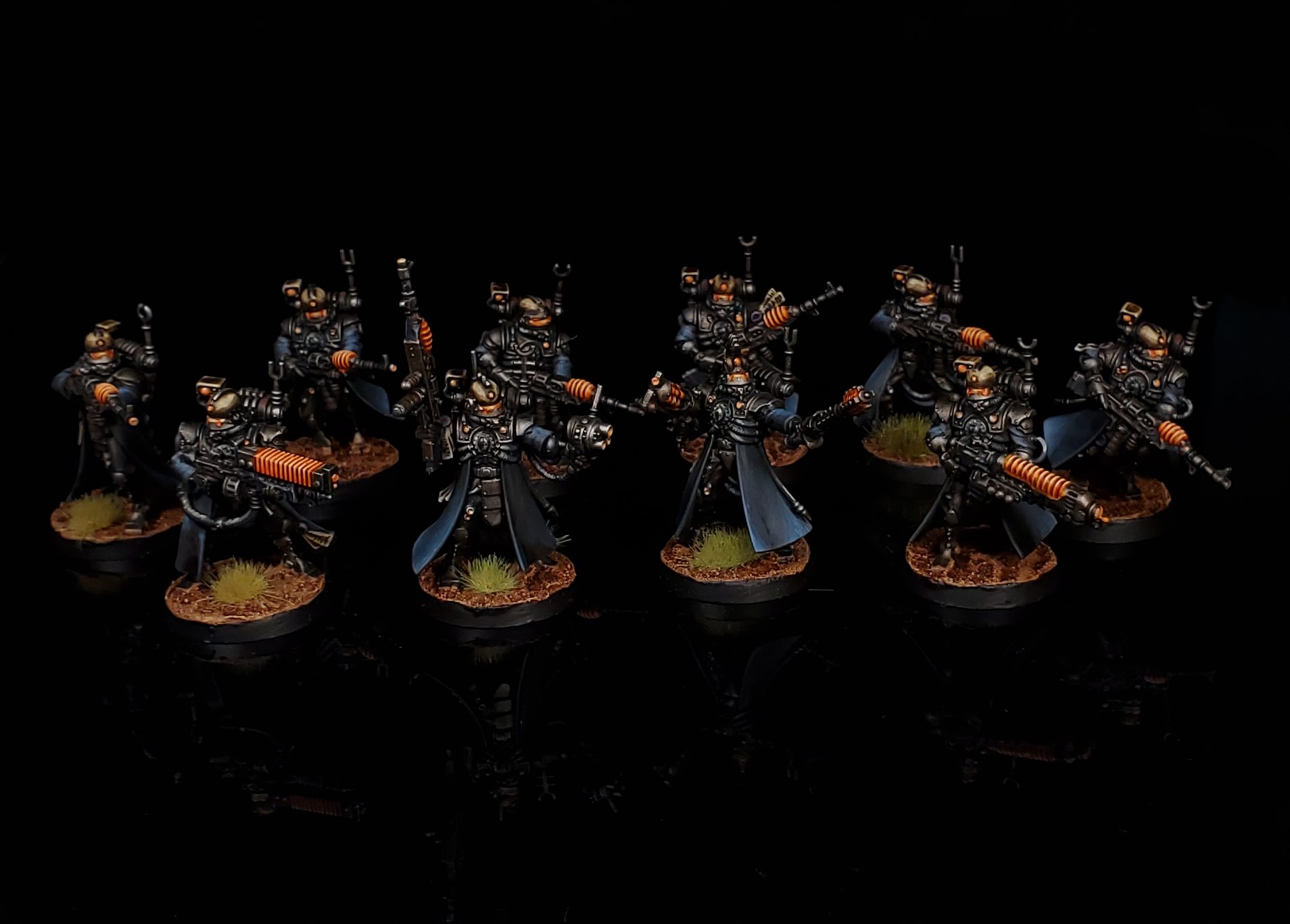 This issue is the first of two containing a unit of Skitarii Vanguard/Rangers. The kit can be built as either, so I've included pictures of both, even if the magazine only wants you to build them in the Ranger configuration. In my case, issue 21 did not come with any bases for these models, but issue 22 came with enough for everybody, so hopefully someone picking these up
