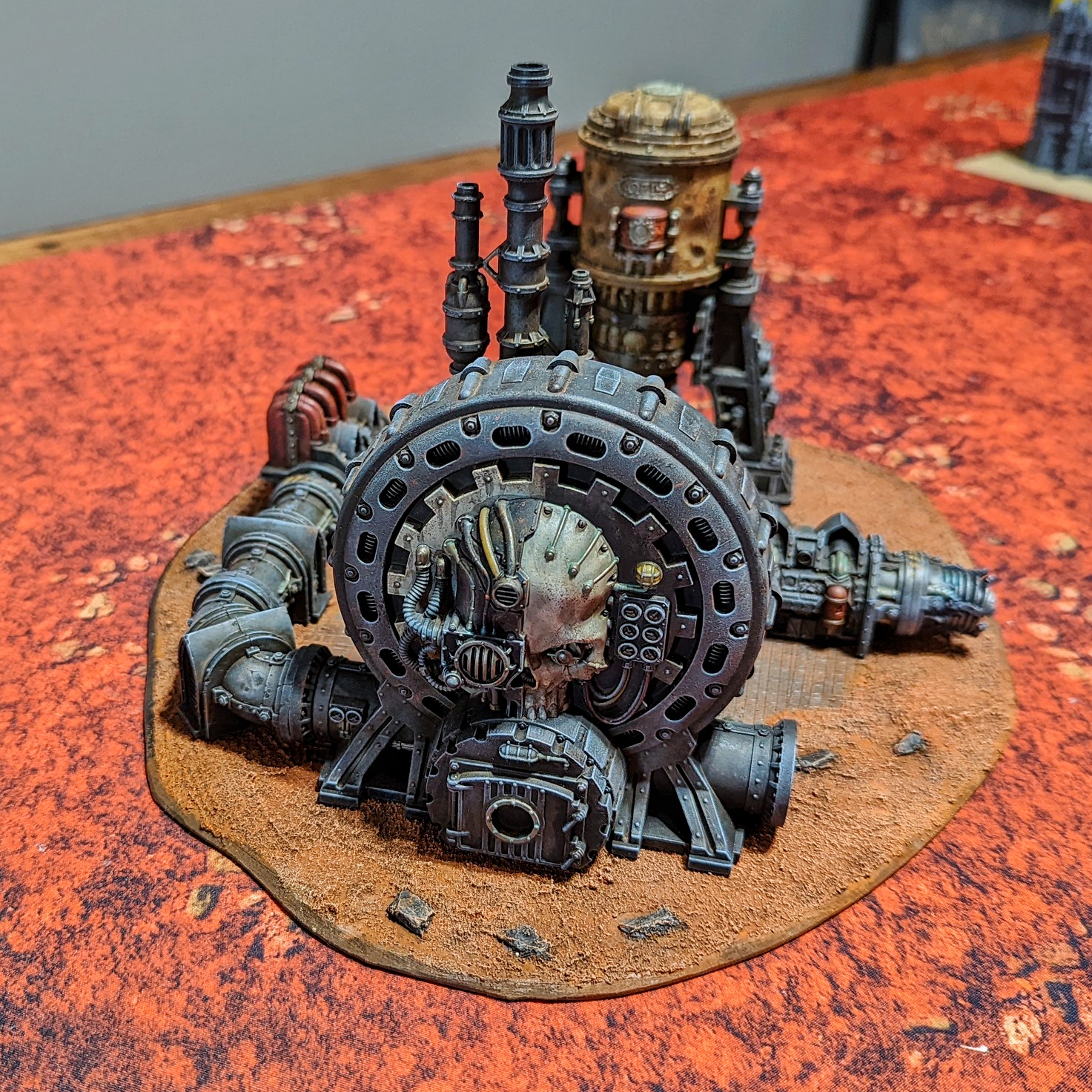 There's precious little information on what a Haemotrope Reactor really is, but multiple metaphors are written about how it transports power, the lifeblood of the Imperium, like blood through the veins of a body. Now, as this thing doesn't really show up in a codex and there's no curiously comprehensive fan wiki article on this I could find, I feel like I remember reading that this thing ran on the blood of martyrs or something equally silly. Maybe I'm crossing streams with the Khorne Lord of Skulls, which runs not just on normal blood, but on that unleaded high-octane murderer blood. There's a Battle Record here too, but the options are scant and most of what you can do is roll on a single table and fill in boxes for all the times people have made cover saves behind it.