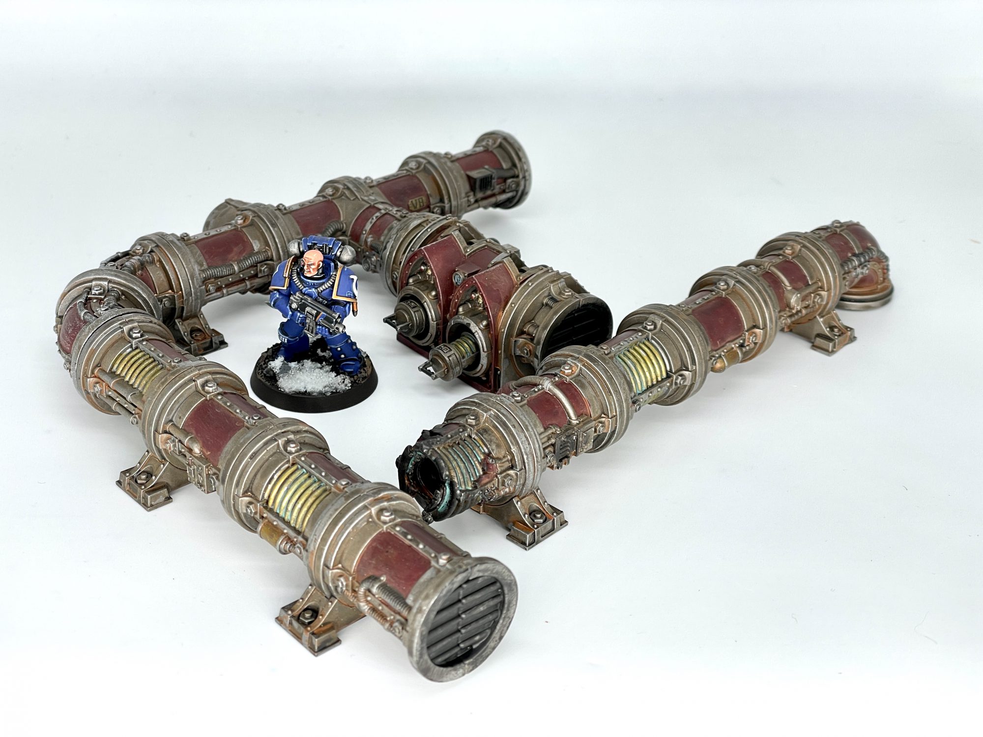 34. You could go back and read my previous coverage of this kit in those prior installments, but I will describe the kit anew should you only be able to goof off for so much of your workday. These lovingly detailed ruins go together in a mere 7 pieces, which fit together using a unique tongue and groove system that I haven't seen on a single other Citadel kit. The gaps they leave down their joins can be pretty large, so I do recommend shaving down these attachment points at least a smidge to ensure a cleaner connection. They do require some force to hold together during the gluing process as well, and all those little rivets and such will dig into your fingers more than you'd like. Even with a smidge of hand cramping, the process for cleaning up and assembling this ruin shouldn't take you more than half an hour. Zenithal priming, drybrushing, Contrast and sponge weathering got mine painted in about 3 hours as well, which is pretty good for such a decent sized piece of terrain.