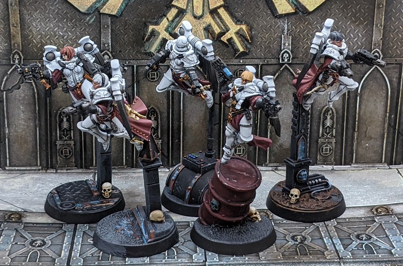 The Sisters of Purity could only barely call themselves "Sisters" in the plural. These last two angelic warriors, Sola Selena and Arabella Campana, had seen their fellow Seraphim martyred one by one over their mission to defend Derek's Mom's Dining Table IV. Even as experienced flankers, their assignments were dangerous and attrition was high. Yet, fate had long smiled on Sola and Arabella, as in a previous campaign the two had been spared by an Aeldari raiding party. This was not the first time these two Sisters were the last of their number, and it would likely not be the last.