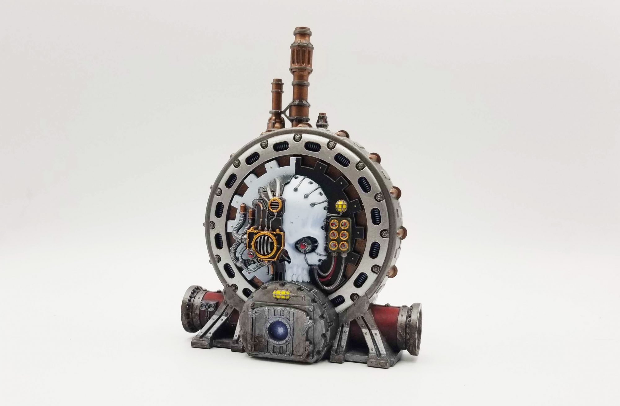 The assembly process for this model couldn't be much simpler, but the painting tutorial here has some cool techniques at play. Beyond our usual washing and drybrushing, Astrogranite texture paint is applied to various locations, then painted brown to simulate industrial grime. Normally Typhus Corrosion would do this sort of thing, but we're working with what we've got. Beyond that, orange is applied to build up a nice rust effect, and the end result looks fantastic. It's cool that they're introducing some offbeat paint effects like this, and really shows the breadth of all these tools and supplies. Funnily enough, there is also a tutorial for a cleaner Haemotrope Reactor, likely updating the one we got way back when. This is the first time they've really offered multiple options in their tutorials, and I really dig it.