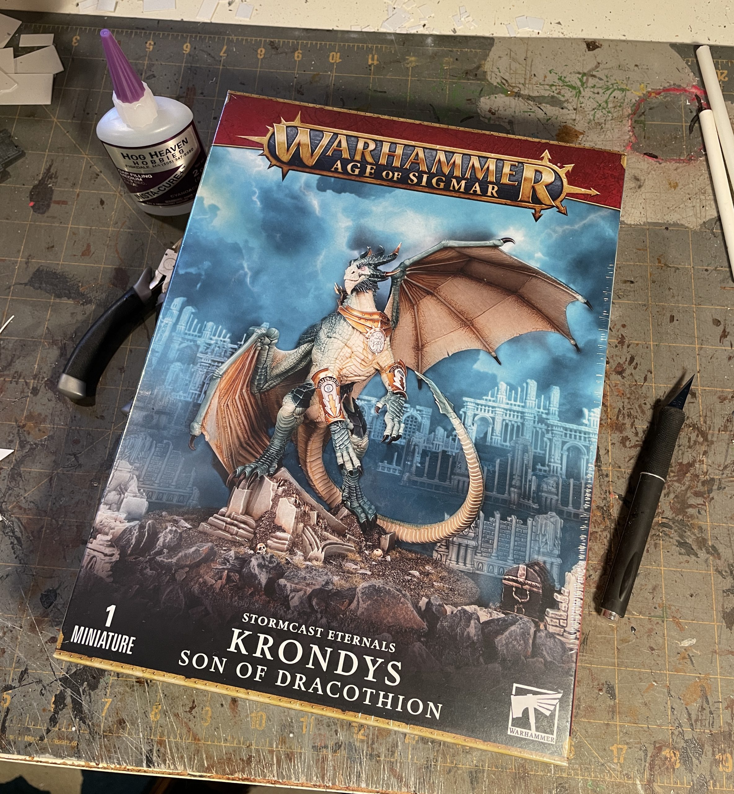 Fantasy Rules! at Historicon. A selection of fantasy armies were arrayed for our selection, from classic knights and men-at-arms to armies of ogres, orcs, dragons and monsters. I immediately gravitated towards the trolls and dragons, betraying future me's fascination with platemail and heraldry. I believe my reasoning was "dragons are cool," an opinion that has stood the test of time. Age of Sigmar now asks, "Why do the bad guys get all the cool monsters? Why should they have all the fun?" and has given the Stormcast Eternals a growing bestiary of monsters to choose from. One of these is the focus of this premium issue, which we will crack into in just a moment.