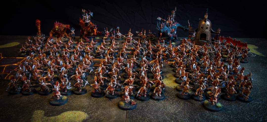 What I appreciate most about Aqshy isn't just its landscape of skull pyramids, snow-capped mountains and steaming/burning jungles, but its emotional effect on people dwelling there. In a feat of romantic fantasy writing, people from the realm of fire don't just like using burning weapons and fire magic, but have emotions that run hot as well. Aggression and hotheadedness are the words of the day, and generals who can bait out that unfettered fury from their enemies often gain the upper hand. It's something the writers of Age of Sigmar attempt often with mixed success - folks from the realm of light are literally enlightened and those from the realm of death are morbid and depressed - but what is the dominant emotion of the realm of metal? Does everyone from the realm of beasts adhere to a paleo diet? Not all these emotions and mannerisms map onto tabletop wargames super well, but it works here in Aqshy.
