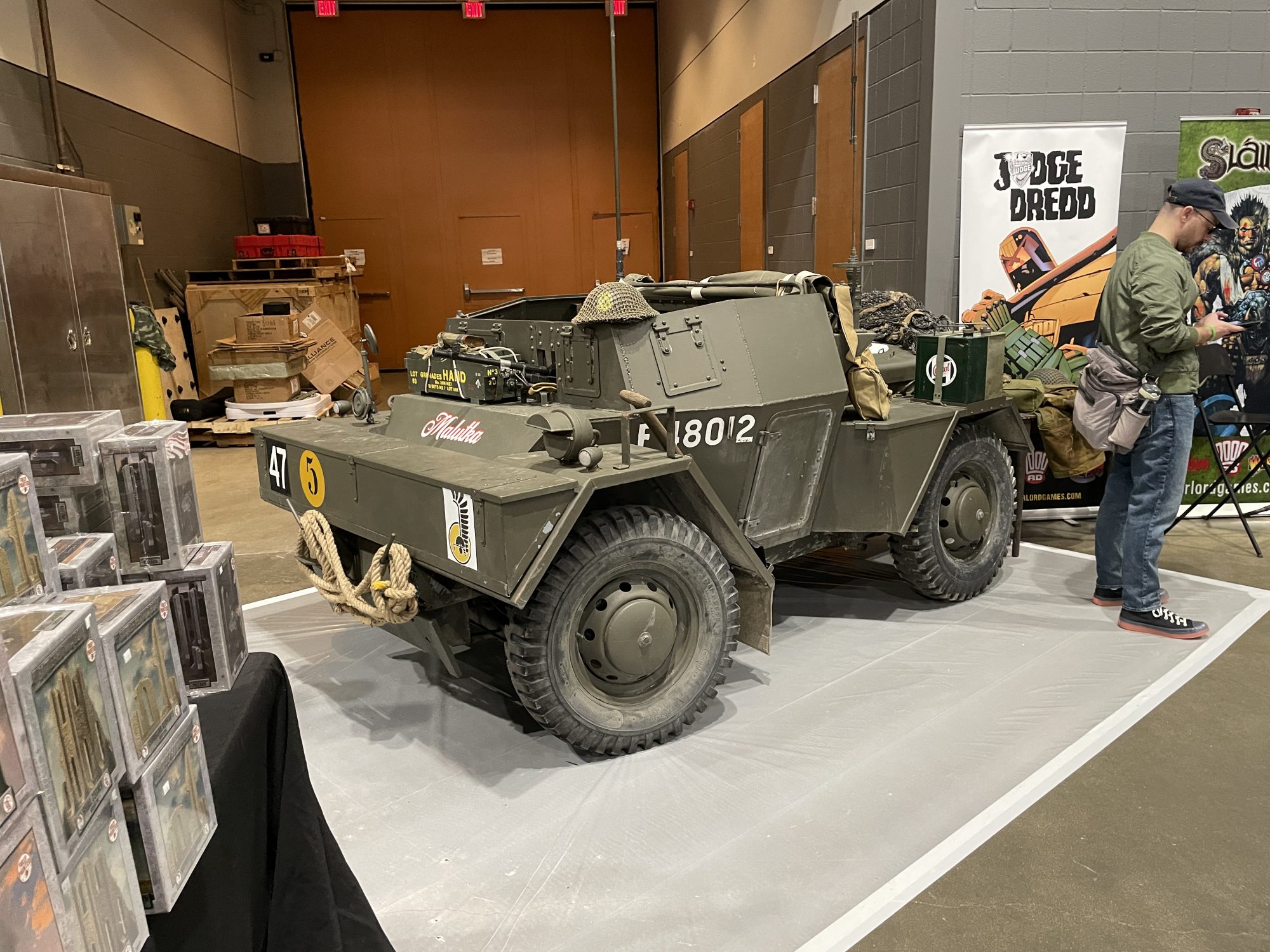 My stomach filled and my senses softened, I was off to get my badge. The GW preview event was going on at this time so I figured the process would be quick. It was not. I was separated from my crew due to the haphazard organization of the line, so I wandered around the still-in-progress halls to see who I could run into. I find Dan from Tectonic Craft Studios, one of those guys I run into at every con and am always happy to see. I met him through my ex's ex years and years ago, and now he's just another friendly face who makes cool MDF doodads. Tell him Campbell sent ya. I also ran into Brent from Goobertown Hobbies, and we talked shop for a bit. We both enjoy each others' work, and it was cool to bridge the parasocial divide. That will happen a lot this con, in one direction or another. I also said hi to Todd from Tablewar, another old con friend who I last hung out with in New Mexico. He was raffling off a Warhound Titan he and Caleb Wissenback painted for Tablewar Charities. It was gorgeous, and I offer my sincere congratulations to the lucky winner who took it home.