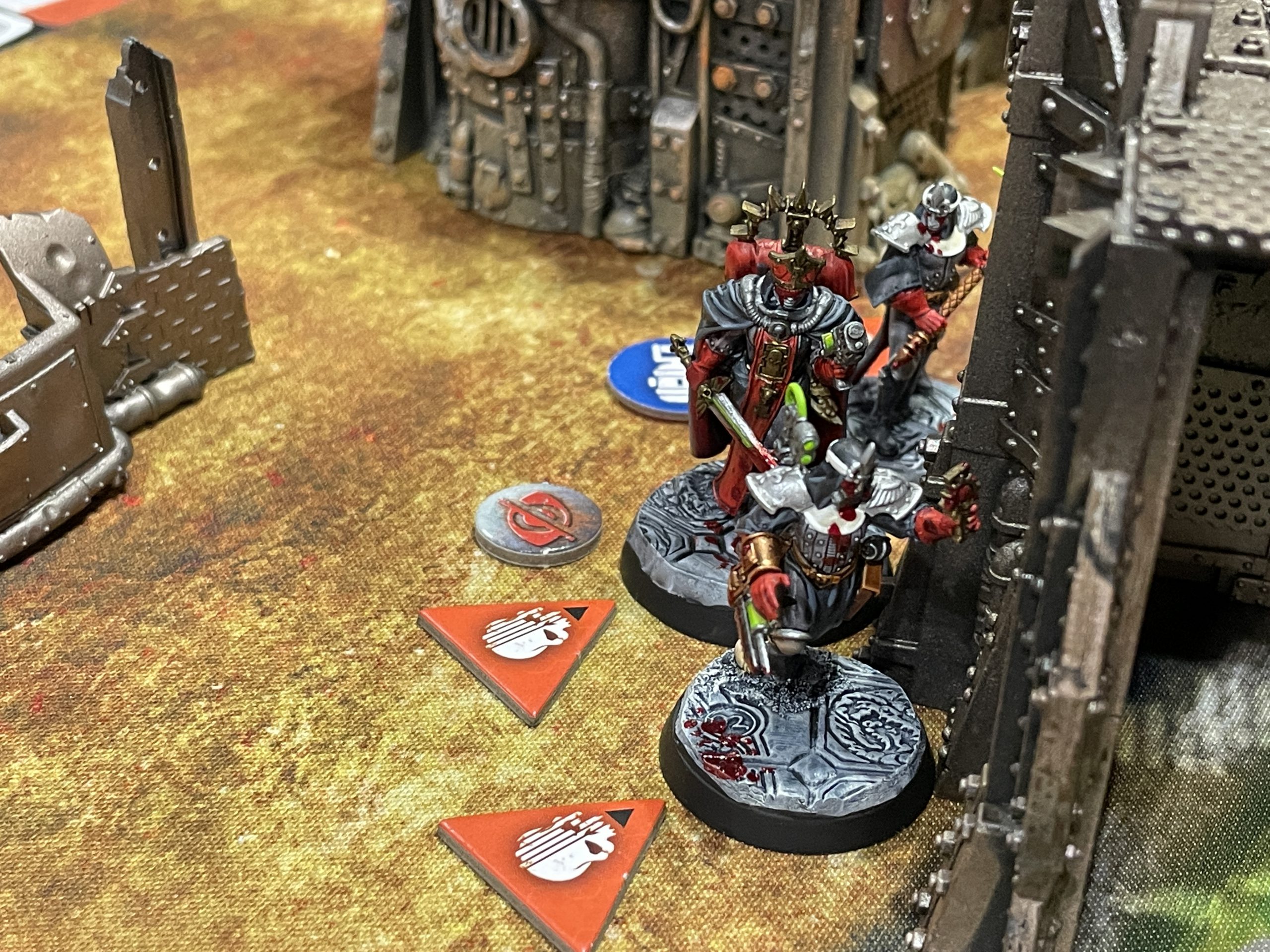 This was another Into the Dark game, and I identified that this would basically play out like Aliens - a couple of jobbers will get munched by his Genestealers, my named dudes played by A and B list actors will survive til the end, and there will likely be a big explosion as the timer runs out. I was correct in all of these assumptions. The first 2 turns went extremely well for me, as I routinely looted the objectives I had to loot, and I set up a brutal firebase where my Lectro-Meister held down a barricade with a few of my other models, daring Randal to get into my Mortal Wound field. I could tell my team was frustrating him these 2 turns, as they’re a tricksier team with a lot of ass pulls and space lasers, and I was a bit slow as a player since I’ve only played Kill Team a few times. While my team was definitely doing the damage they needed to do, he was doing a little better on objectives and he started munching my guys on turn 3. He eked out a narrow 2 point victory against me, and we ended at 14-16.