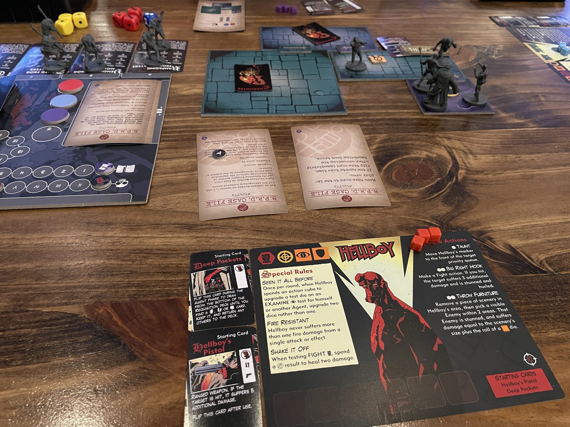 Hefeweizen from Dovetail Brewery. It was a classic take on the style, a clean and sweet "banana soda" in the words of my cohost. I said my goodbyes to Carl and Chelle as they headed off for their game, and Patrick busted out his copy of Hellboy. I had heard a lot of good things about this boardgame through other
