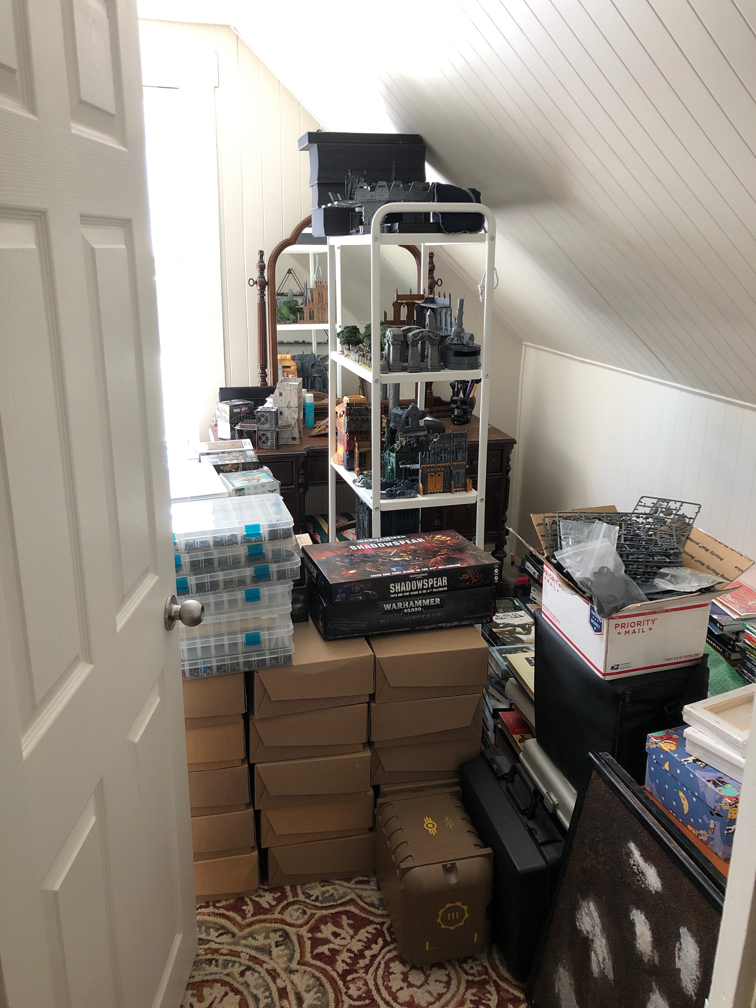 With a renovation going on in the office, I've had to pack away all my ham stuff save for a few essentials. This also means I don't have my desk or ample lighting at home to paint right now, which means...