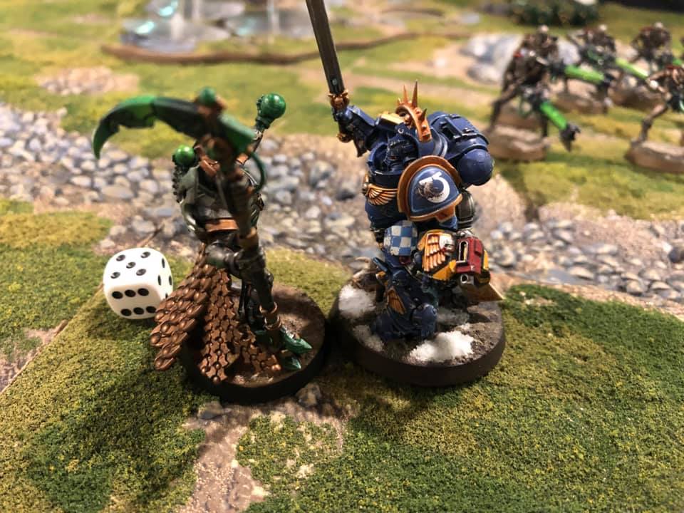 even gooder. He killed the robotic jerk, only for a strategem to be played which brought the Overlord back to life. Bellyflop charged, Vulpes shrugged off all his scythe attacks, and put the bot down for good. With the Necron army in a rout and the VIPs dead, it was a bitter fought draw.