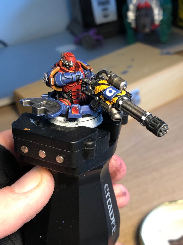 Finally, I'm working to cure my serious case of not having a tank, and I've started my Repulsor! Not the new, good one, but the old less good one. While most of it isn't that impressive yet, I painted the turret gunner to get myself motivated. I'm painting each piece to completion individually, which I think will make for a more pleasant tank painting experience, and one that won't involve me forgetting the lens on the left stormbolter turret or whatever.