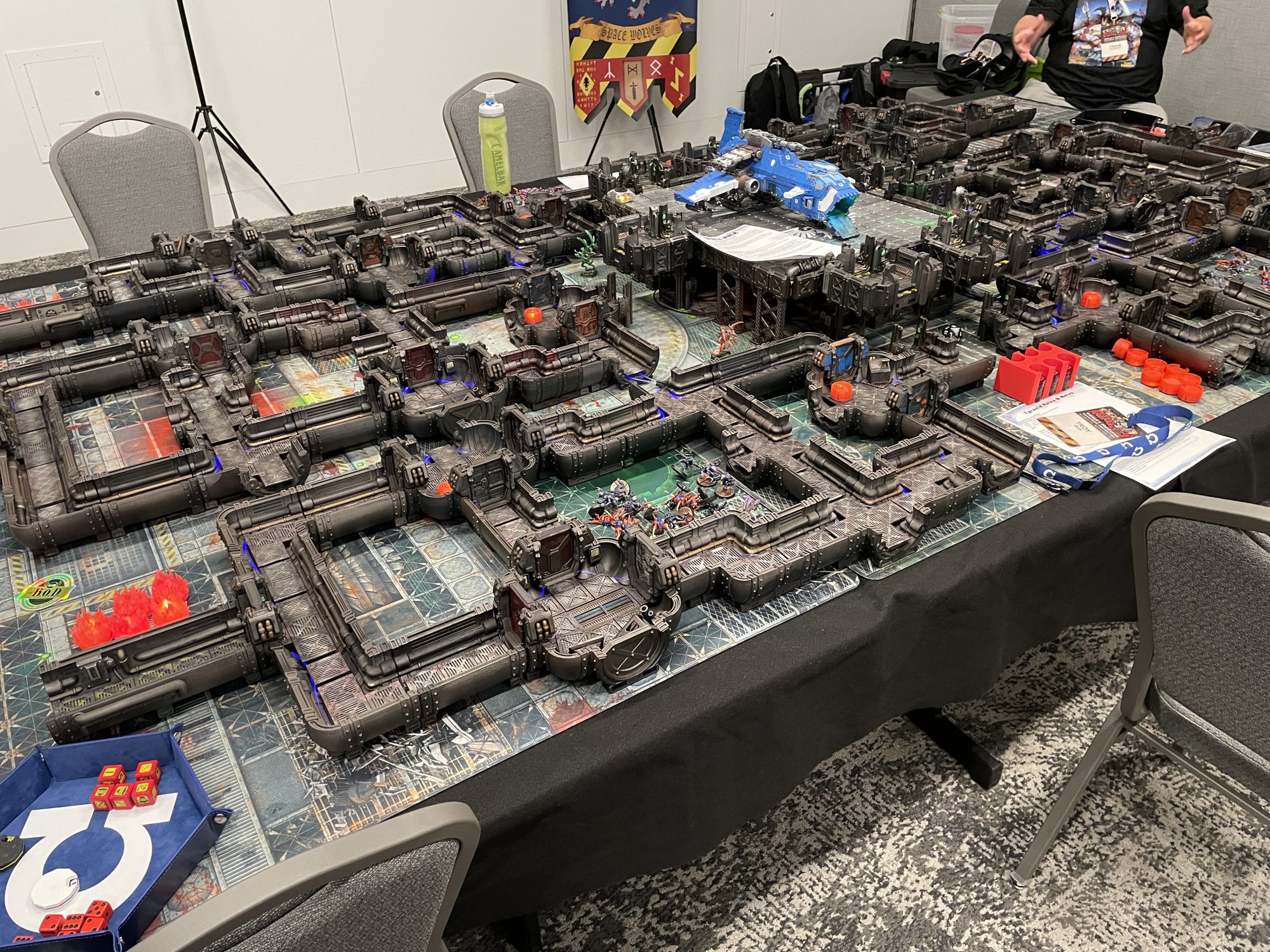 The game was an absolute blast, the kind of well-oiled convention experience I hadn't played in since I was a teenager. Much as I love bringing my dudes to an event to show them off and run them into my opponents, showing up to play this kind of authored experience where everything is provided is hugely freeing. It's also the kind of experience you're likely only ever going to get at a con. Anybody can bust out their old Space Hulk board game and have a good time, but only so many people and places can run what is essentially six games of Space Hulk at once on beautiful, modeled 3D tables replete with LED strip lighting, painted miniatures, and custom scenarios.
