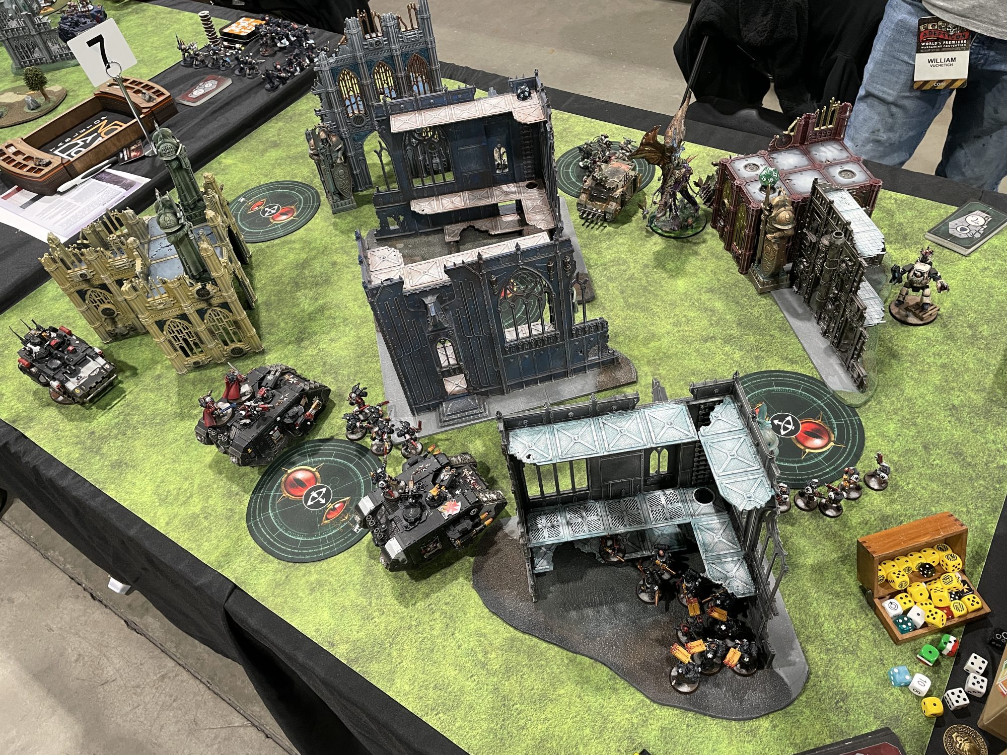 Nothing against Will (or Jeff from Day 1) but I realized that I really should have just been using the Flex to organize pick up games with people I already know. Having a dedicated space to get games in that's a bit more formalized than the open play tables is really nice, and the energy around the Flex is great. Carl said it was going to be bigger next year, which I'm all for. I honestly feel like with how many folks have convention pals or online friends they only see every so often, it's great to have a dedicated space where they can make that happen, or just play casual games with a group of largely chill folks. I dropped off my Gladiator, Sword Brethren, kitbashed Judiciar, and favored Lieutenant models at Golden Daemon, gawked at some of the far, far better paintjobs than my own, then reunited with my buds in the Flex area.