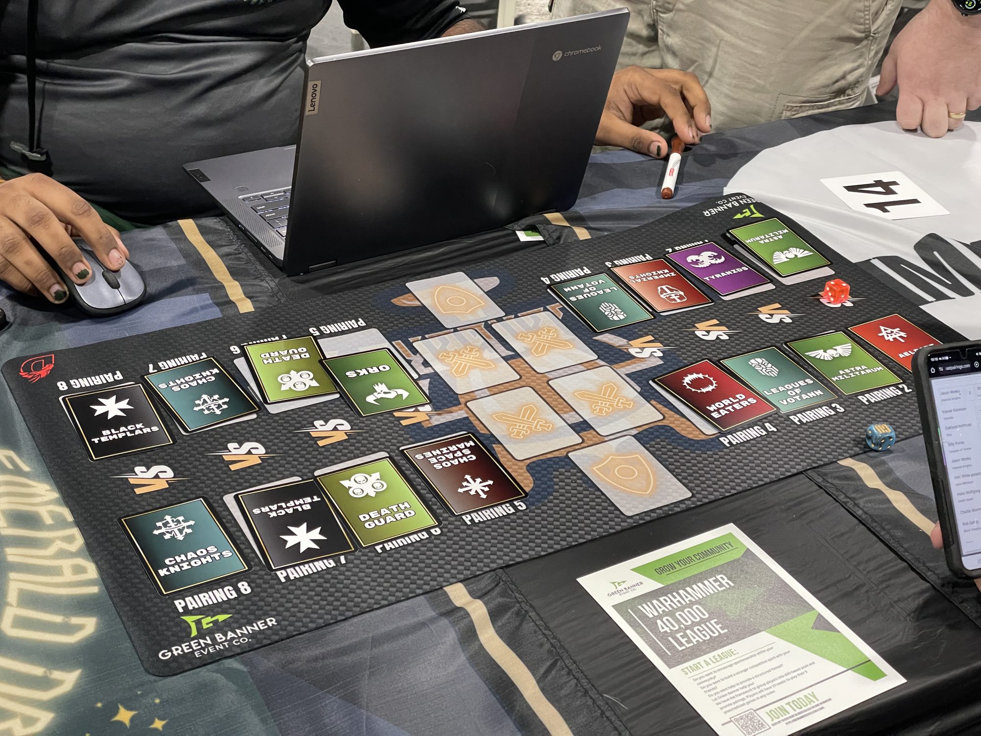 At the start of each round was a pairing minigame, where one team would put forth a defender, the other would pick two attackers, and the defending team would pick one attacker and the table layout. Then the teams would alternate, back and forth until all eight matchups were determined. Scores were differential-based, and instead of the typical 0-100 scale of a typical 40k game, there would be 20 points to fight over. In other words, a total blowout could be 20-0, while a very close game could be as close as 10-10 and make for a draw, even if one player technically won. I'll be real, I do not wholly understand the math here, and every time it was explained to me, my brain would put up a wall through which no information could enter. Please do not comment with the logic here; if I read it, my