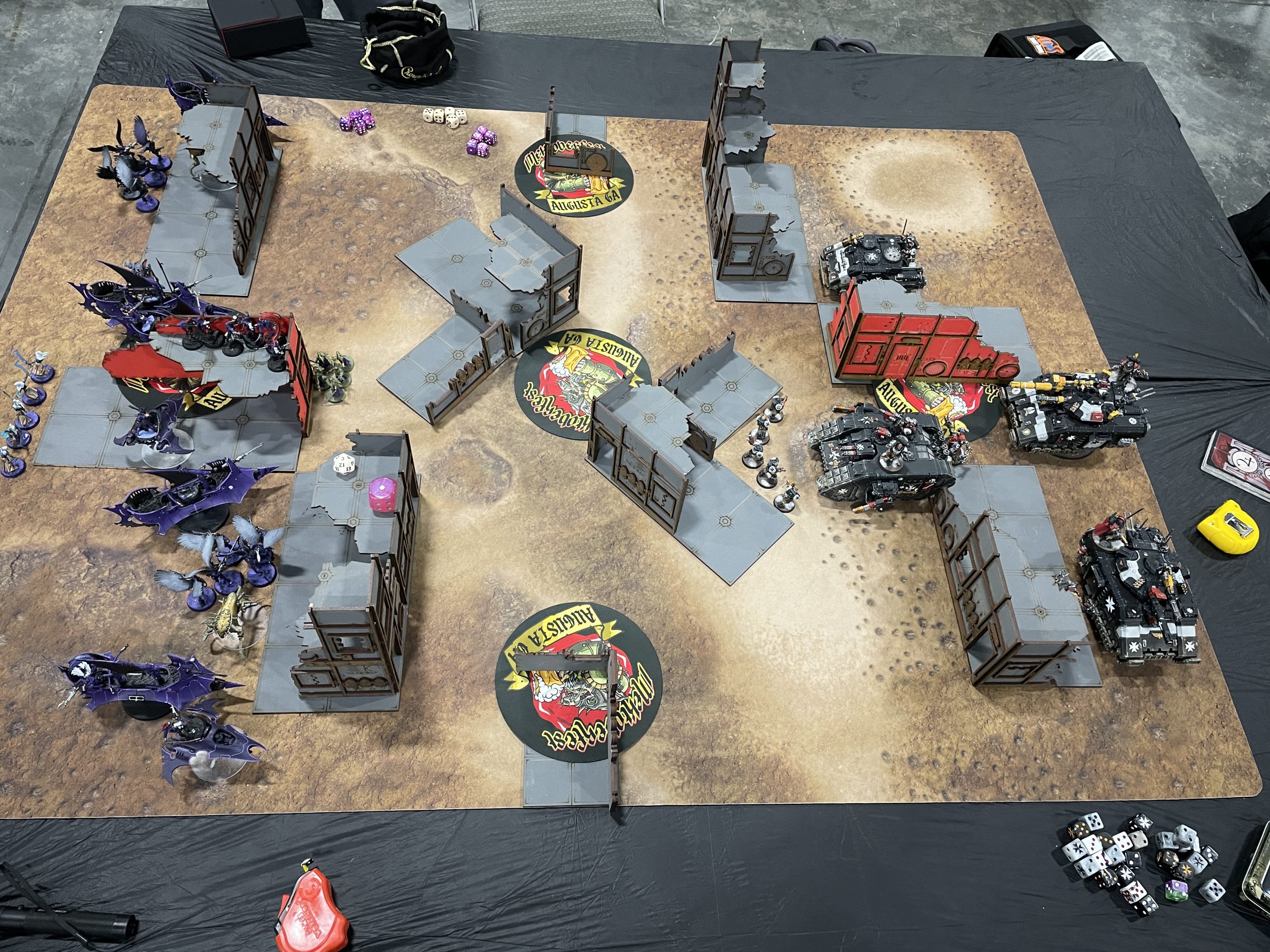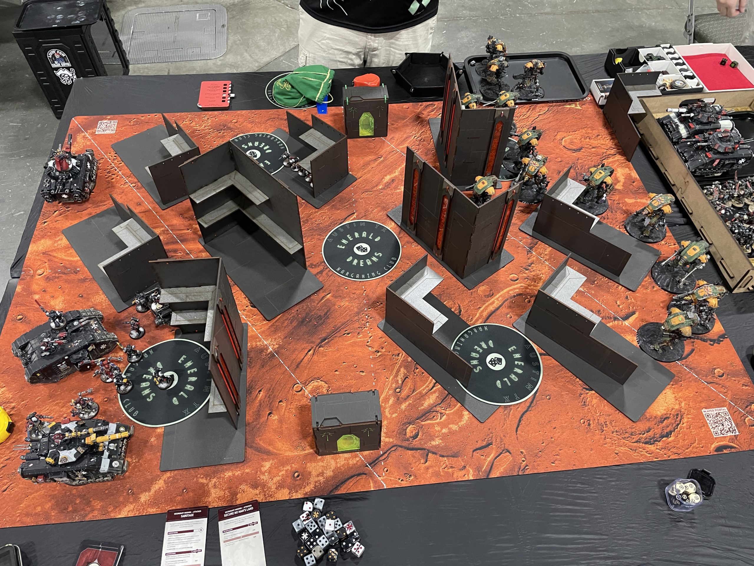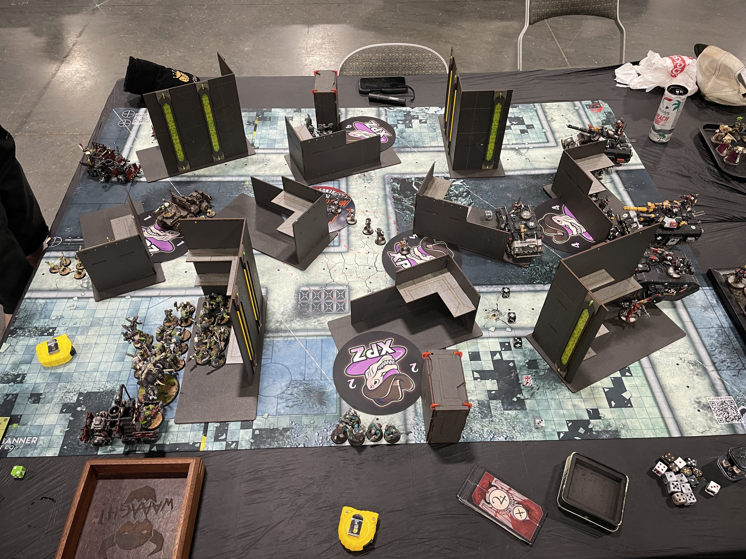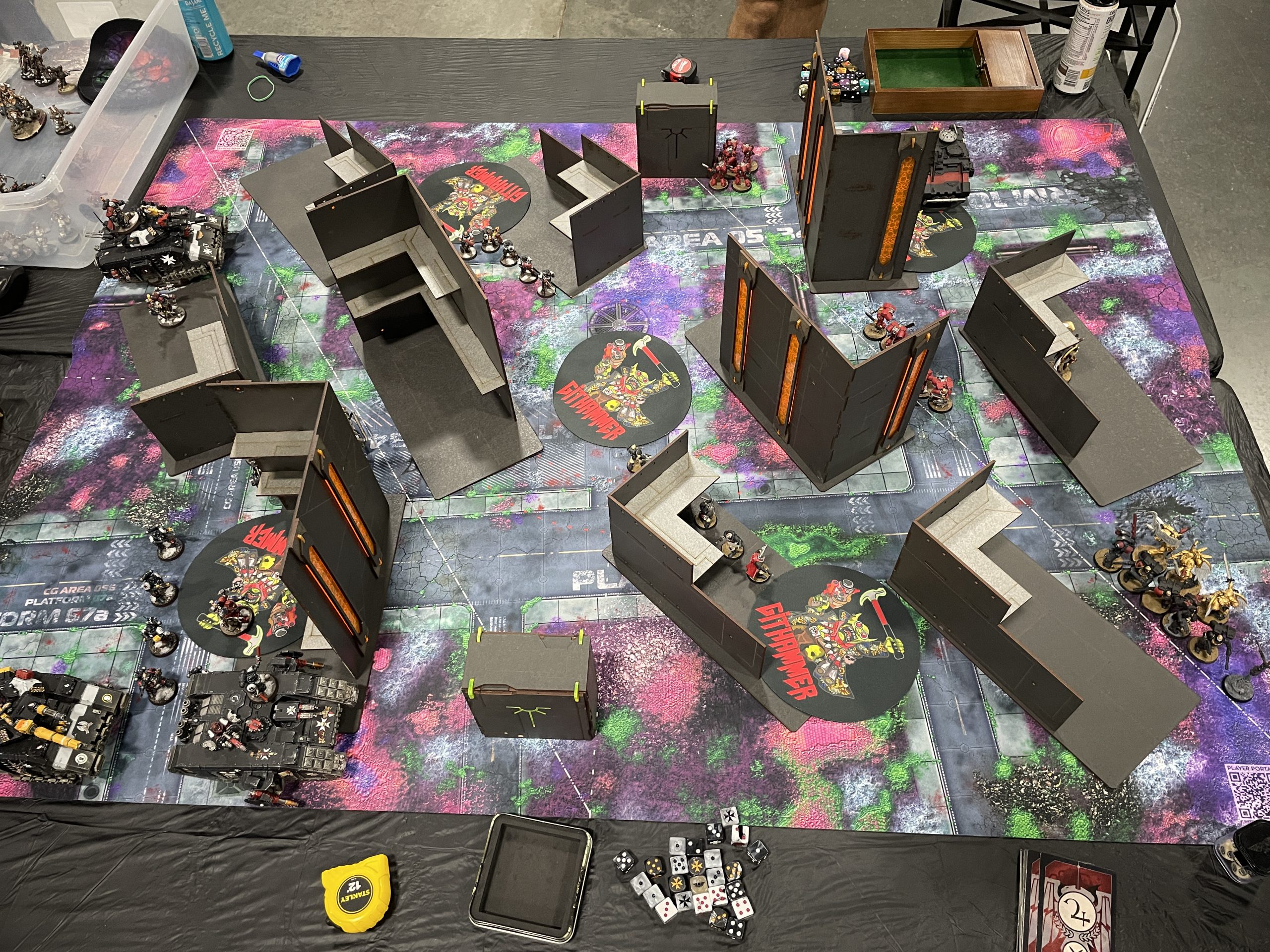 One more morning, much like the last, and we were off to the event. While the night before we'd looked at pairings and folks were very confident about a few of my matchups, I never felt that same confidence. I was really feeling the sting of taking Ironstorm and effectively bricking 150ish points on Techmarines who seldom did much, then spending most of my CP on core stratagems instead of anything specific. I feel like when you're only spending CP on those generic ones, you're doing something wrong. I'd get to make those same mistakes again in my first match of the day.