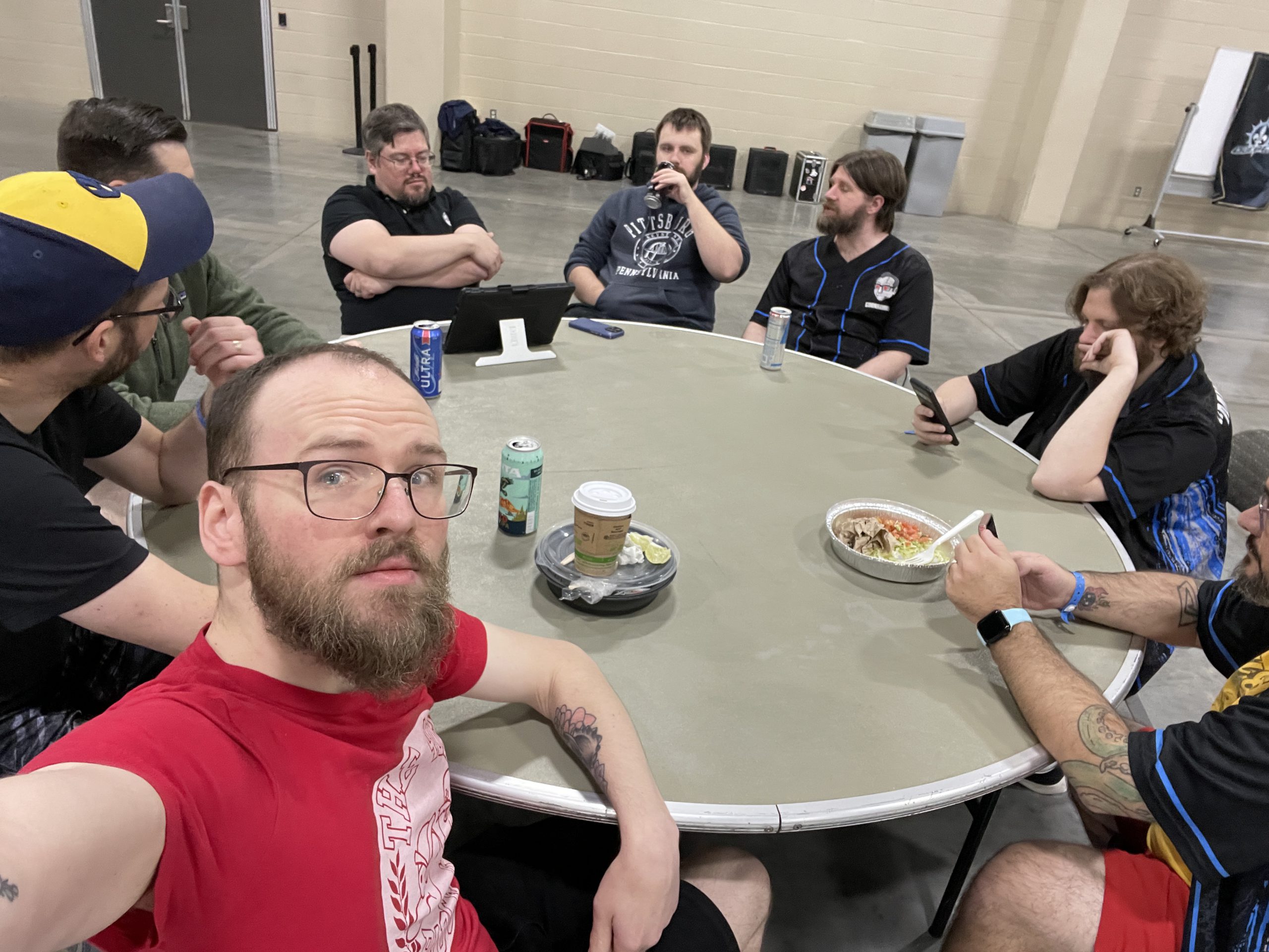 With over an hour left in the round, an hour between rounds, and my teammates all occupied with their games, I had plenty of time for lunch. I could have stuck with the convention center concessions or walked to one of the fast casual joints nearby, but there was another event going on at the same time. In the neighboring hall was, I shit you not, the