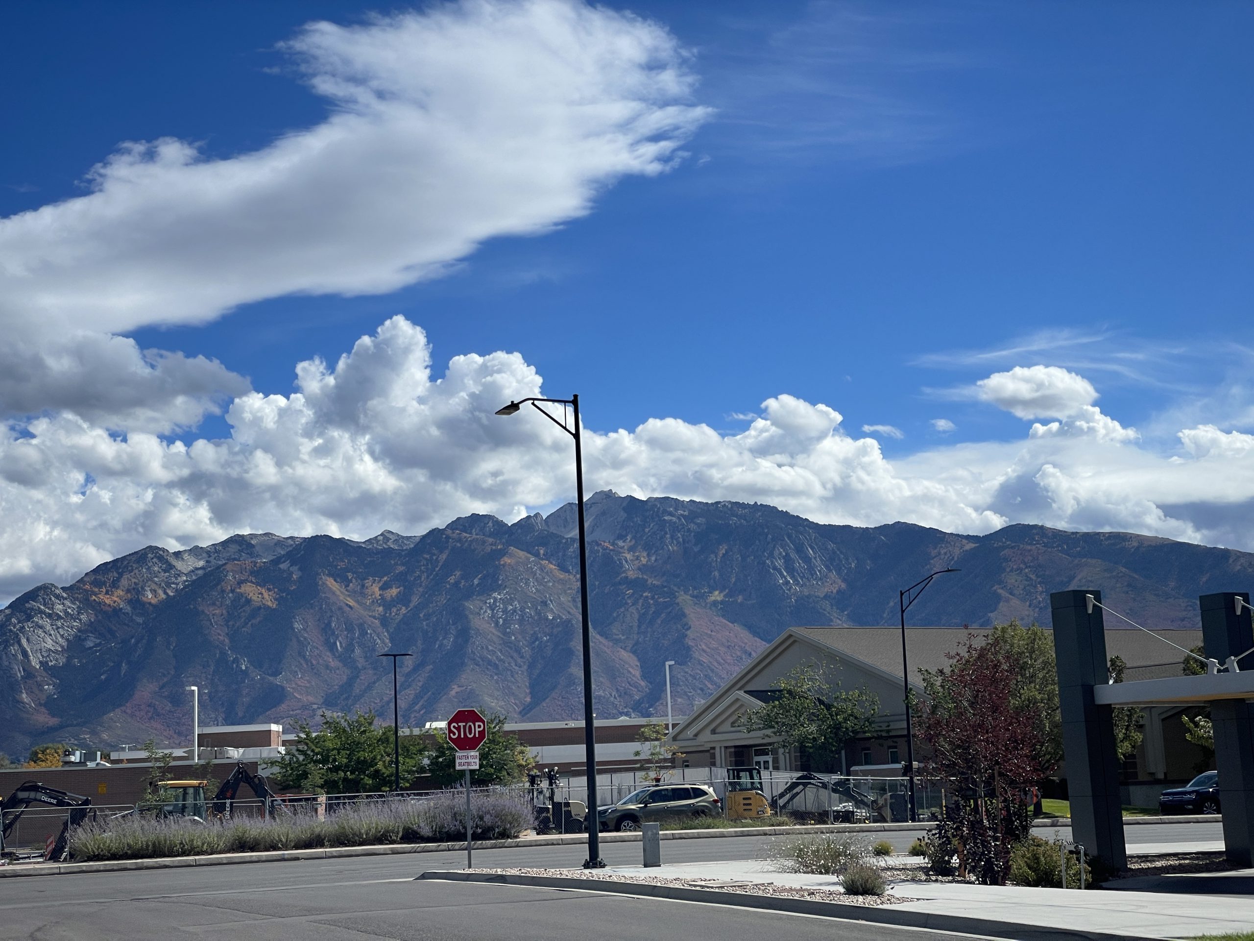 While I had grand designs of driving to Salt Lake City, 13 hours of driving just wasn't in the cards, so I opted to fly instead. It's like 45 minutes in the air from Bend to SLC, so I hopped on a noonish flight and was at the Airbnb by 3pm. Rob and Norman were there to greet me, and we hung out for a while before more folks showed up. We were occupying a pair of houses in Sandy, a Salt Lake City suburb where the event was taking place. As we got there first, ours was Alpha House. Eventually eight of us would be split between Alpha House and Beta House, and once everyone was more or less gathered, we hit up a grocery store to stock up for the weekend. The view in the parking lot was better than it had any right to be.