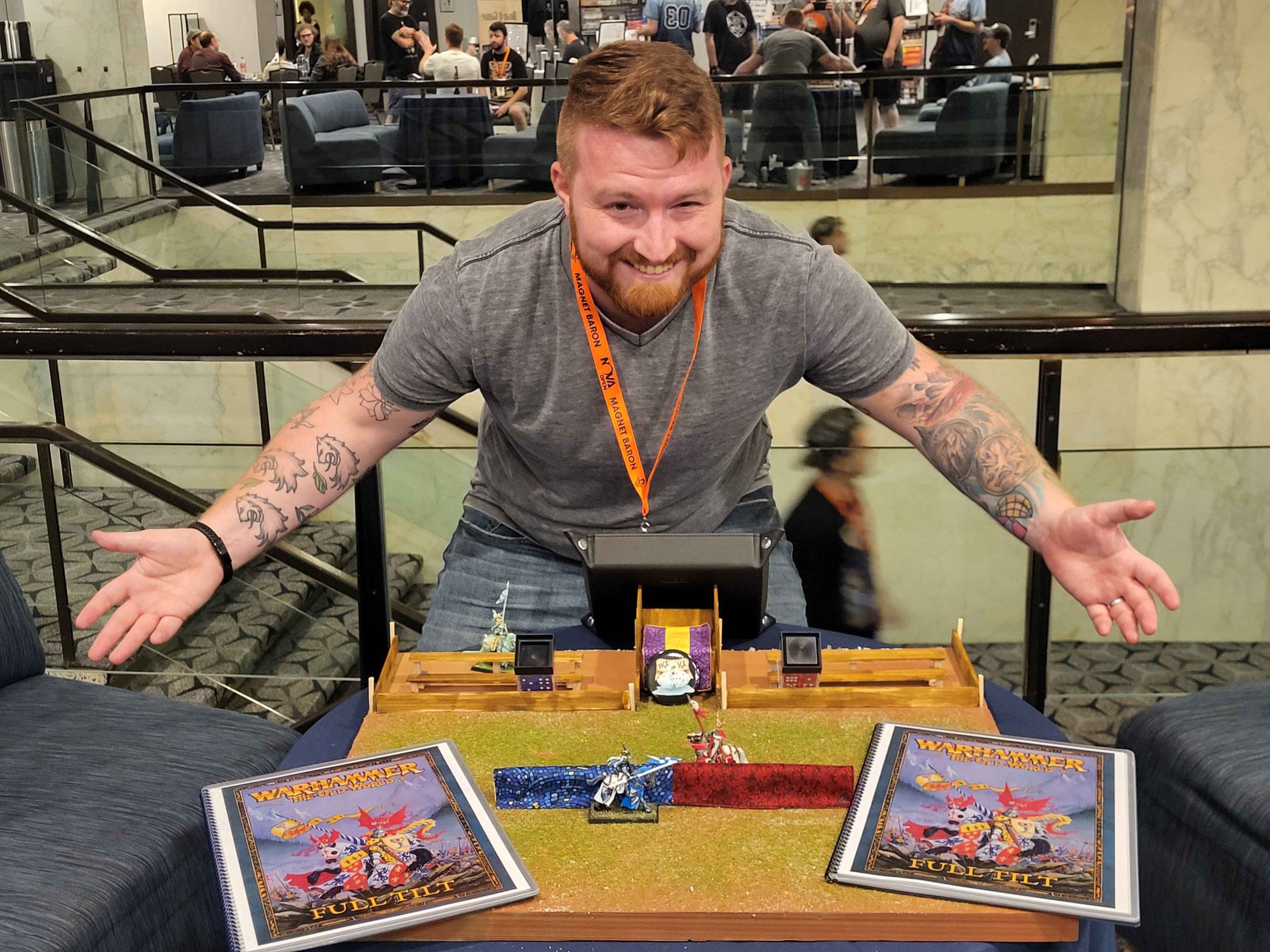 Full Tilt diorama that you can still see at Warhammer World. Ken had scratchbuilt and transported a delightful tilting yard, and a number of familiar faces from the