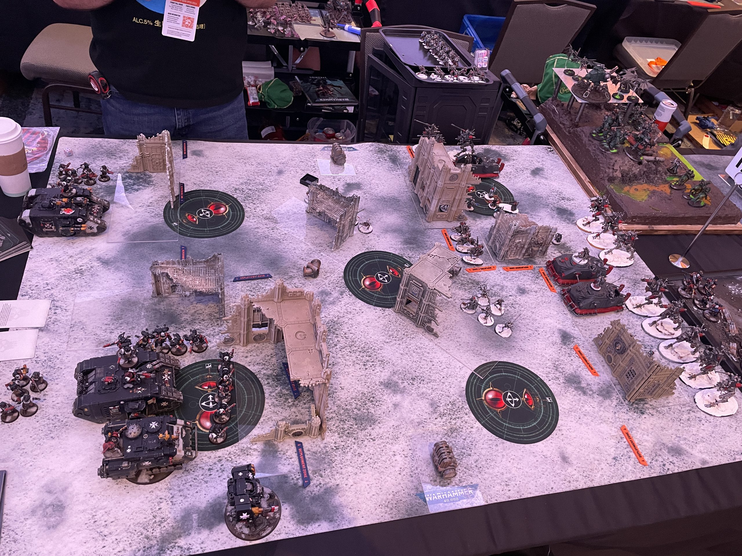 Here at NOVA, I would be entering into the 40k Grand Tournament, a nine-round endurance test over the course of three days. The first five games would be random based on win path, and after that, players would be sorted into brackets, depending on how well they had done. After becoming the