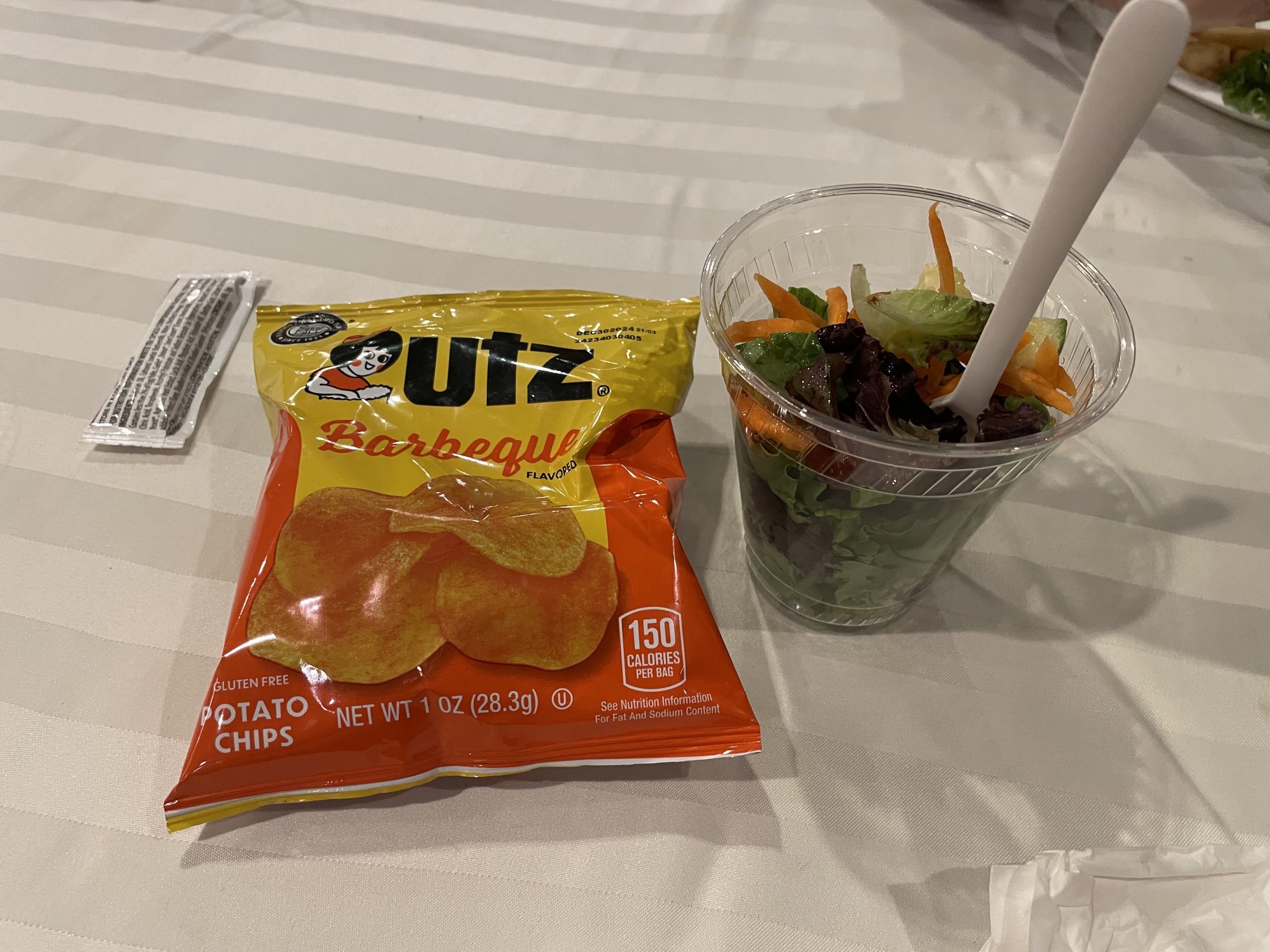 Eric Lofgren, and Dan Osborne before heading to the airport. Andrew and I took an Uber over there, and while security and baggage took an awful long time, it was pretty uneventful. I got a steak mezzo salad at Cava, a Mediterranean fast casual joint I had researched beforehand. It was filling, hearty, and real damn good for airport food, and exactly what I needed after walking 16,000 steps in the beating sun around DC. A gremlin dog wanted my salad, and when its owner said it couldn't have any, it peed on one of the boarding zone signs.