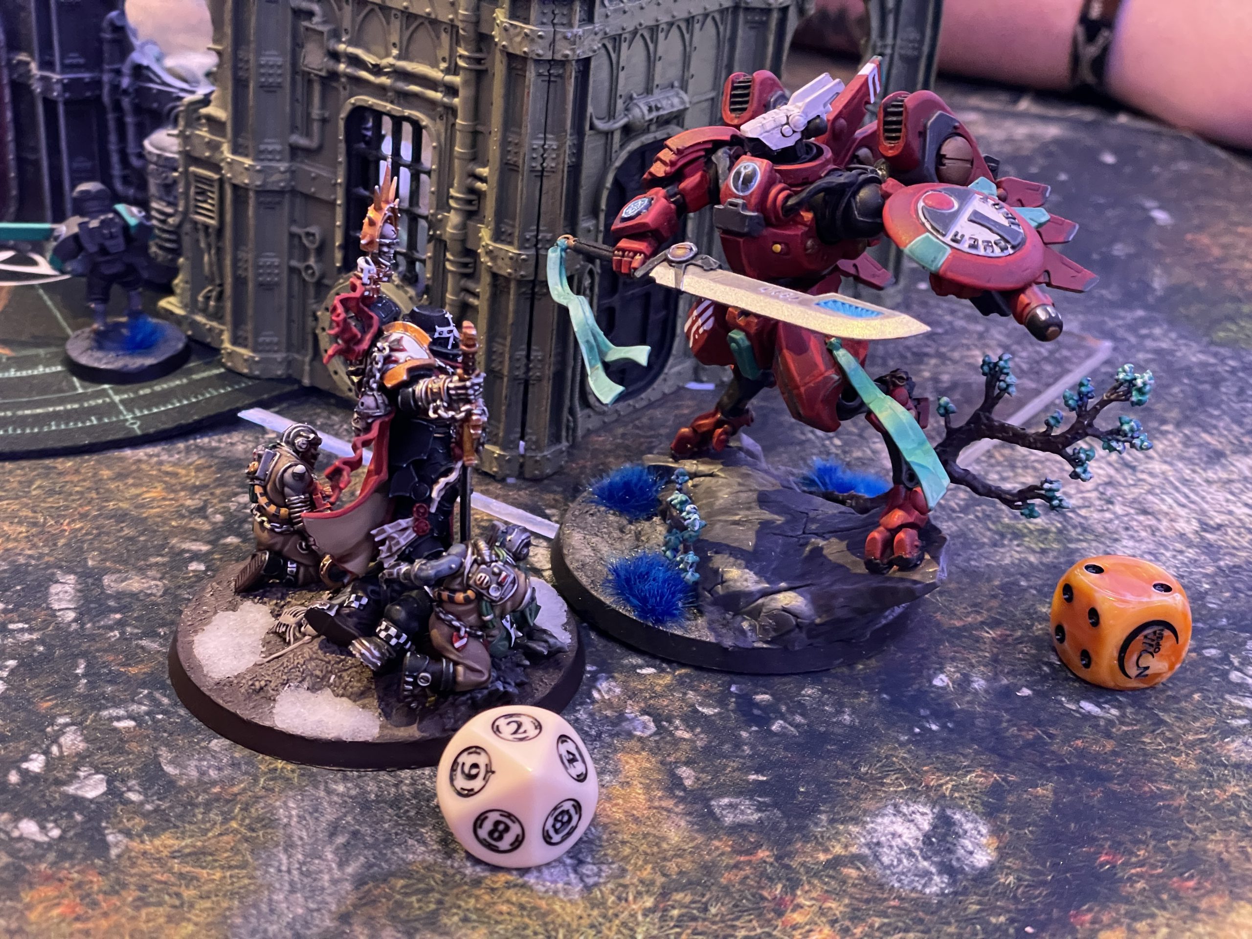 This game did ultimately end in a duel between Commander Farsight and High Marshal Helbrecht though, which was cool as hell. Echoing the rest of the table, it didn't end especially well for the famed T'au battlesuit pilot, but it was still a blast to play a game with Andrew and hang out for a few hours. I hope we can play again with fewer distractions. I can tell he's good at this game and is a genuine delight to hang out with.