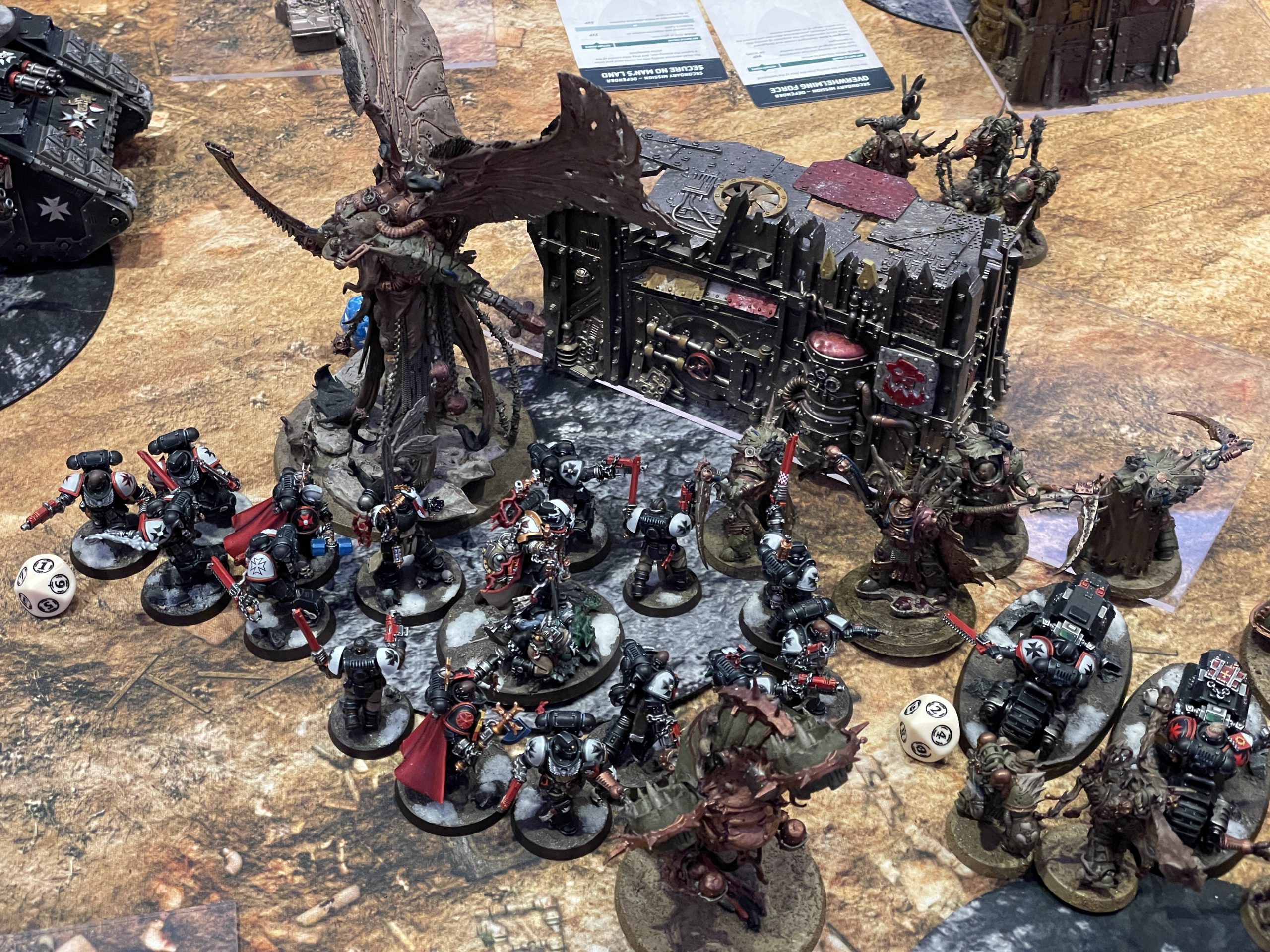 Black Templars vs. Chaos Daemons. Credit: SRM and Doug.