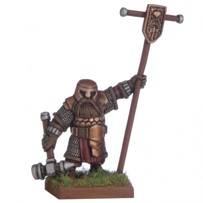 Thinking of being wavered? Grim dwarf army standard bearer reckons you should think again. Literally. Credit: Mantic Games.