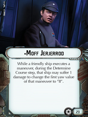 awesome. For one, people mistake 'suffer 1 damage' to mean 'lose 1 hull point'. Rules in Armada as read as written. The damage you suffer can go into any hull zone, and usually goes into an inconsequential shield. The Empire leans tanky, with mediocre manoeuvrability. Jerjerrod is great because he leverages the former advantage to shore up a major weakness.