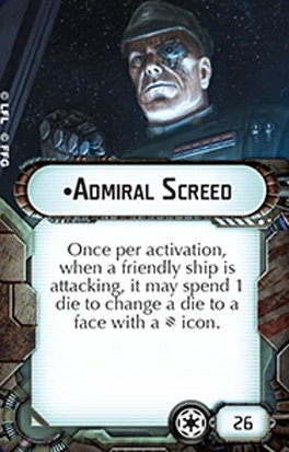 Admiral Screed is a dead simple commander who provides fleet-wide dice management. His ability activates