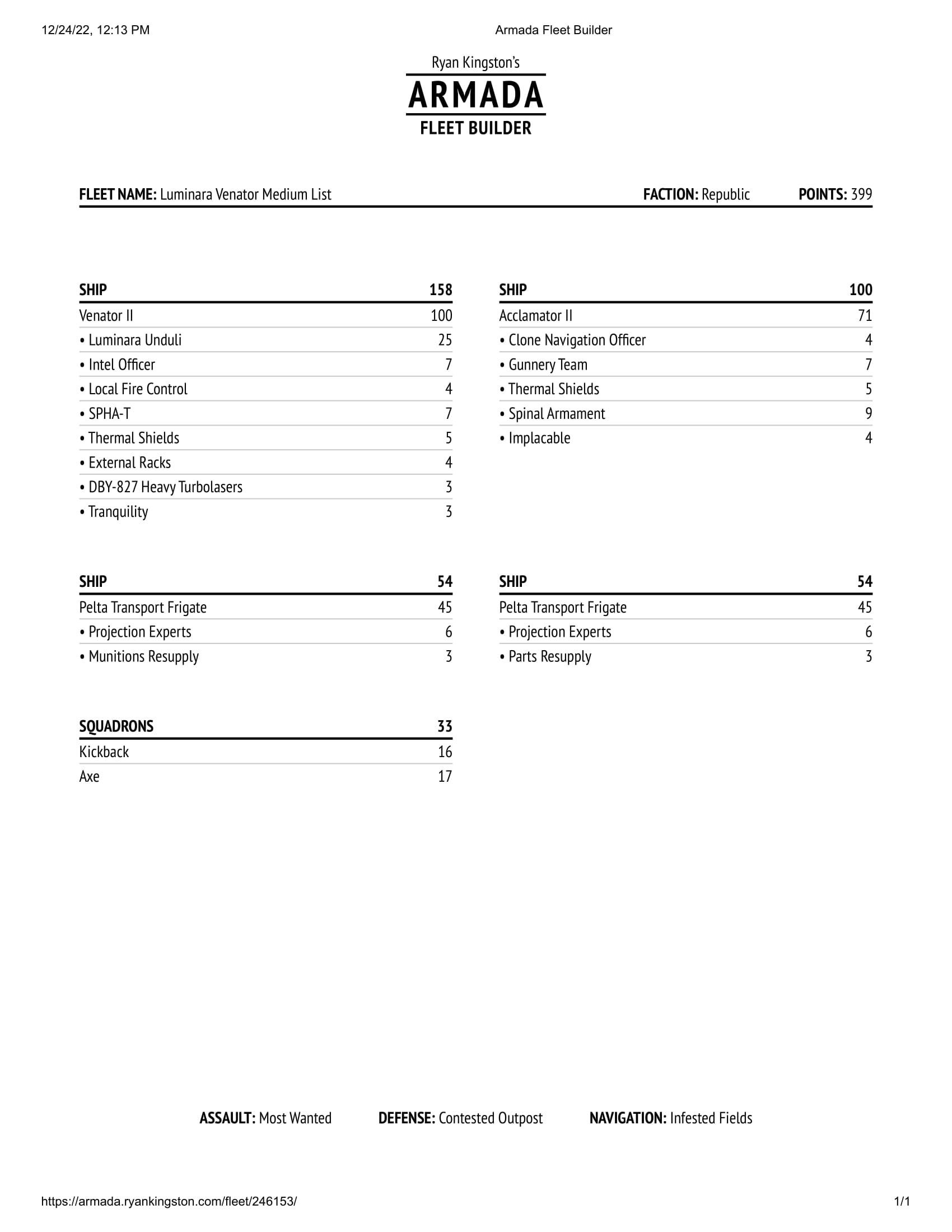 Luminara Venator - This Republic fleet uses Luminara Unduli’s strong synergy with Venators to lay down heavy fire and stay alive with fleet support. Ship-focused and resolute.