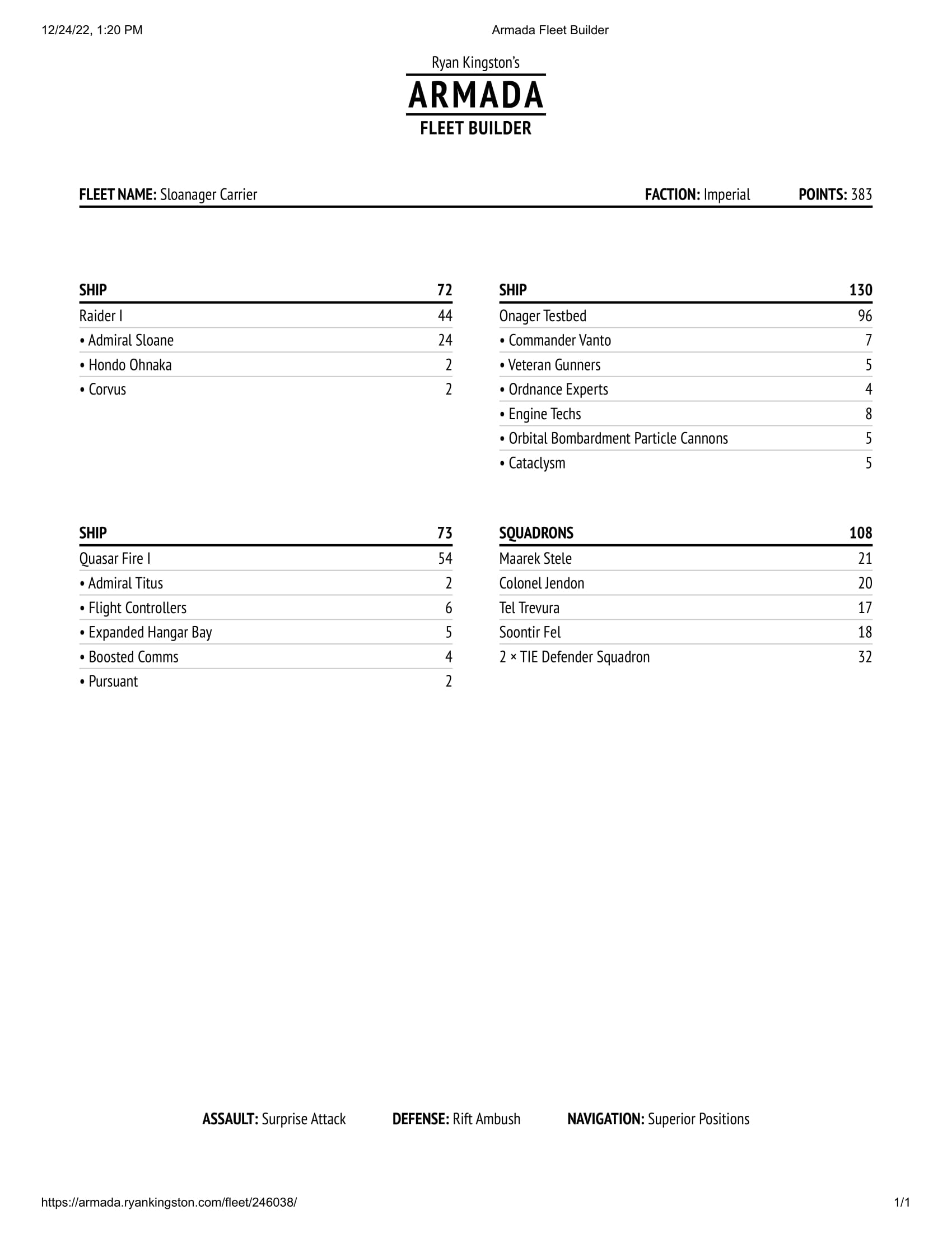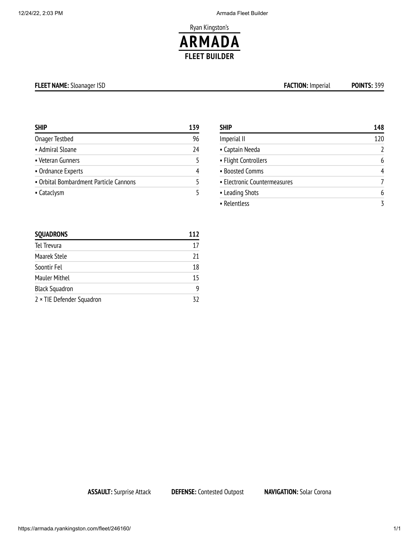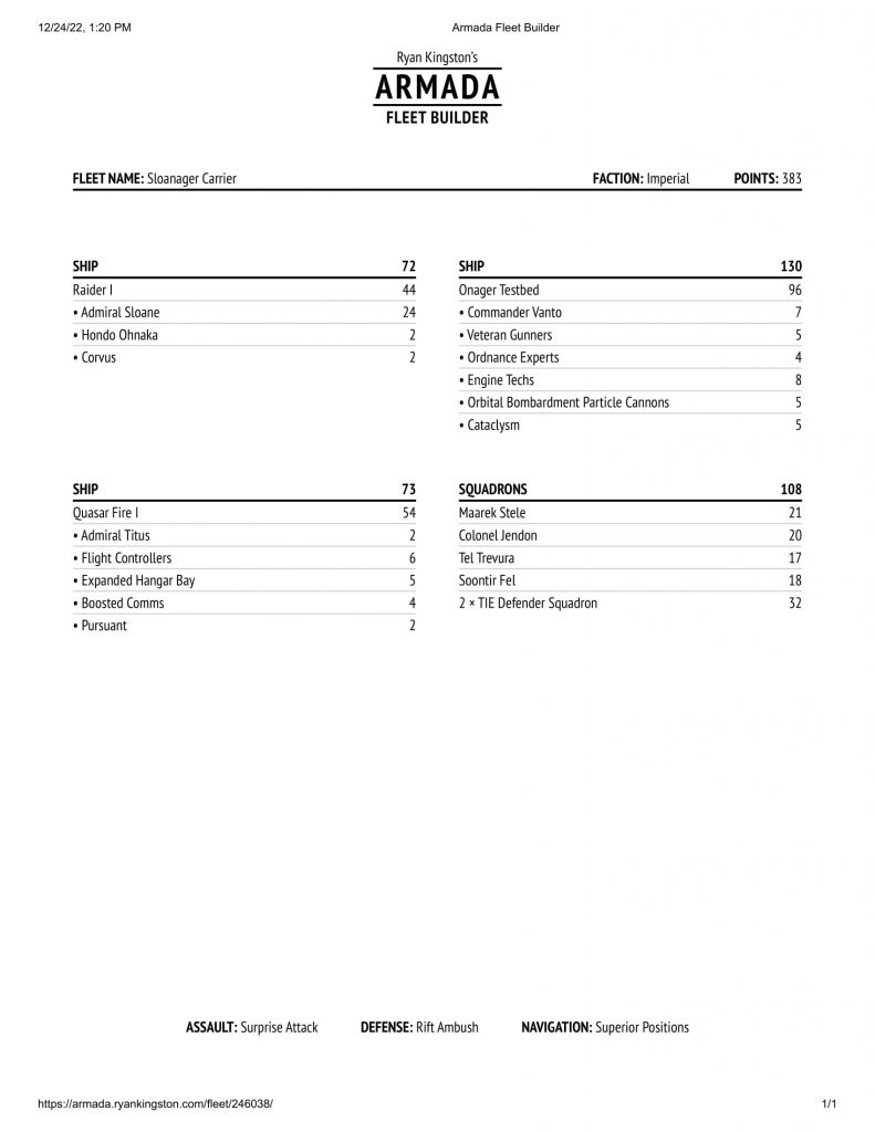 Sloanager - An Imperial list that uses Admiral Sloane to impede ship defences alongside the Onager’s extraordinary firepower to crack enemies from afar. A nightmare at long ranges.