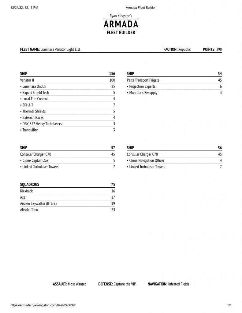 C70s, or add aces to taste. Luminara Venator is a paragon of Republic fleets: steady, cohesive, and durable.
