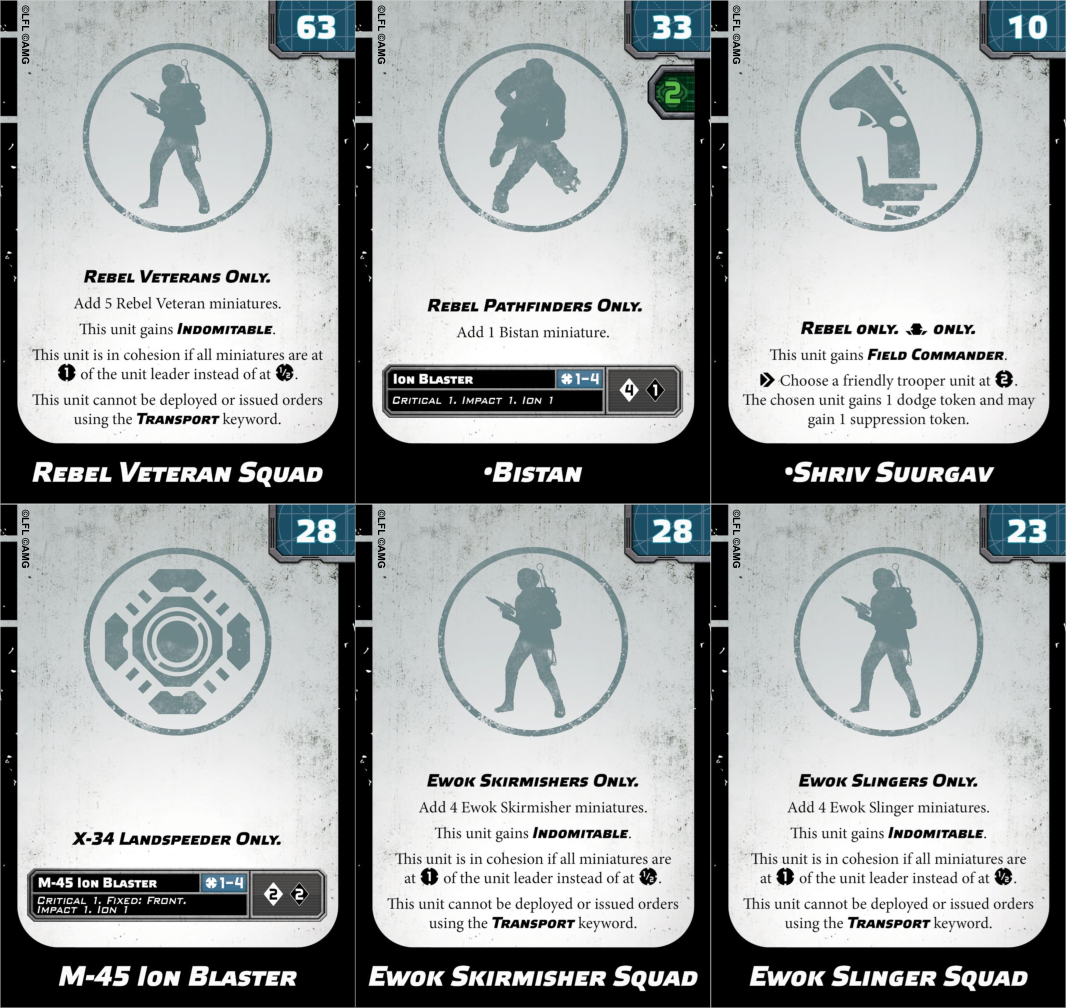 - Units with white T-shirt saves or Low Profile (Rebel Troopers, Rebel Commandos, Ewoks) are big winners here.