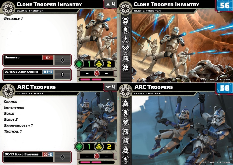 - Formatting issues - At launch, not all units and upgrades were switched to the new card format. Some key models (Clone Heavy Weapons) don't have new cards yet. The release is inconsistent, leaving many players feeling pulled between old and new. Artless upgrade cards and the removal of keyword descriptions from unit cards are problematic.