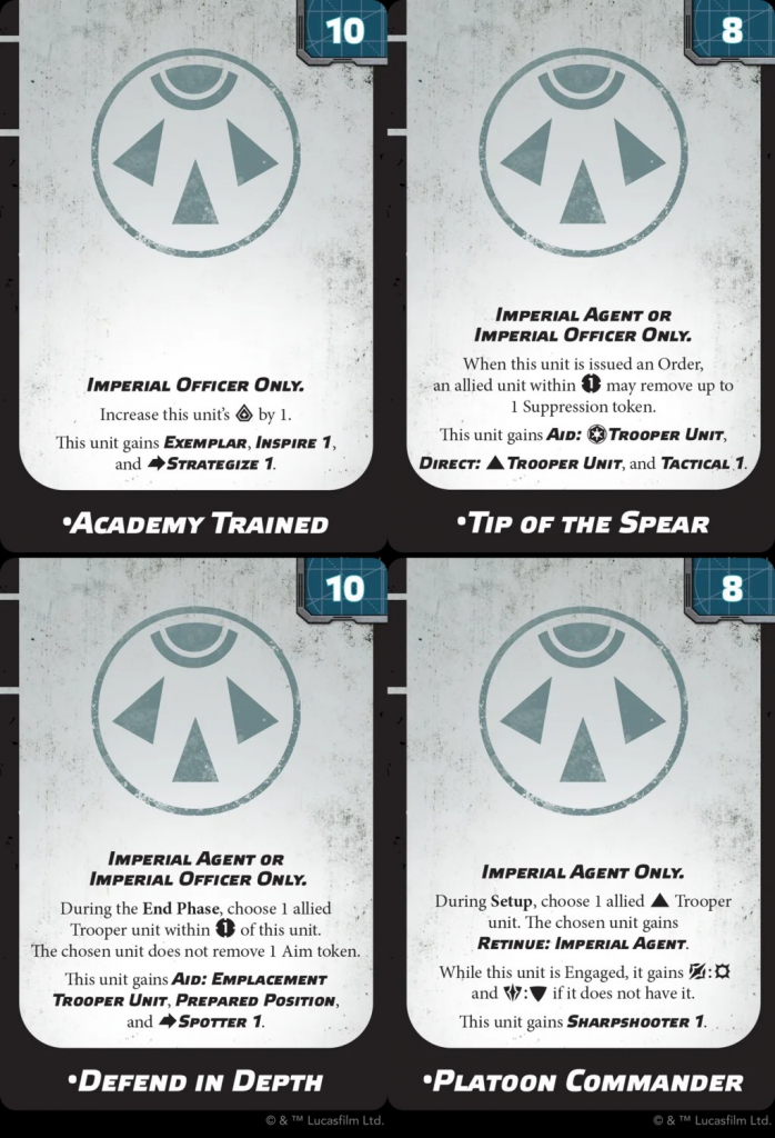 This is probably the simplest of the four doctrines on offer to the Imperial faction. Turning your Imperial Officer into a support commander for the cost of just 65 points might leave you wondering why you would ever see the likes of Krennic or Veers again. Gaining