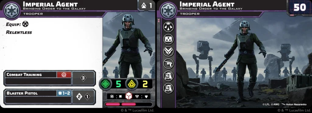 The unit cards for both the Officer and Agent are identical apart from a few notable exceptions: