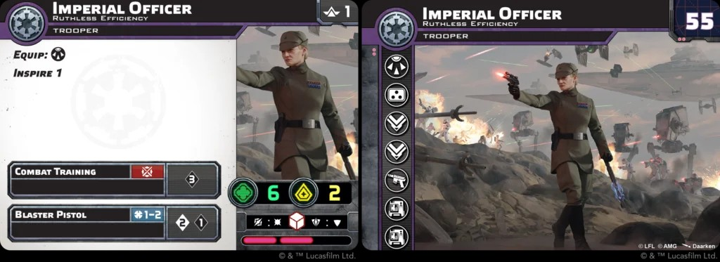 Both units come with white defence dice which surge, surge to hit on the attack dice, 2 courage and a standard 3 black dice melee attack and 2 white, one black dice ranged 2 attack. They come in at the same points value as their Rebel counterparts, with the commander coming in at 55 points and the operative at 50 points.