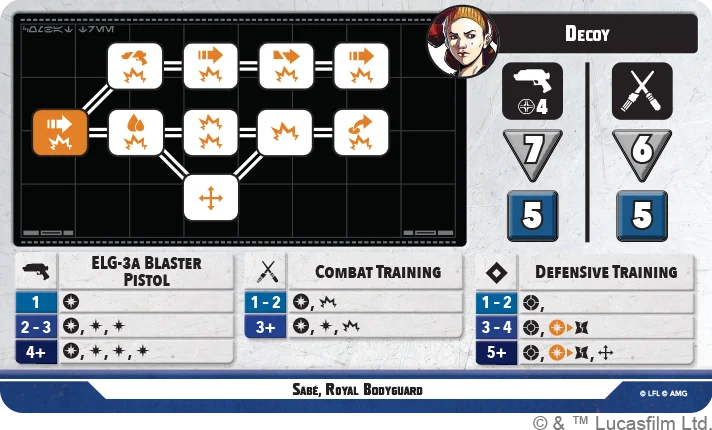 You know and love it from the Magnaguard, more defensive dice against ranged attacks is always good. Unique to Sabé is the fact that she is always a Secondary unit within R2 of herself, so gets to benefit from Cover at all times!