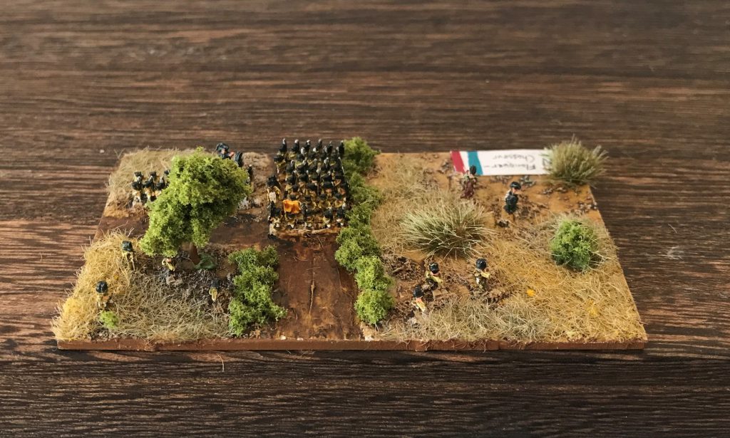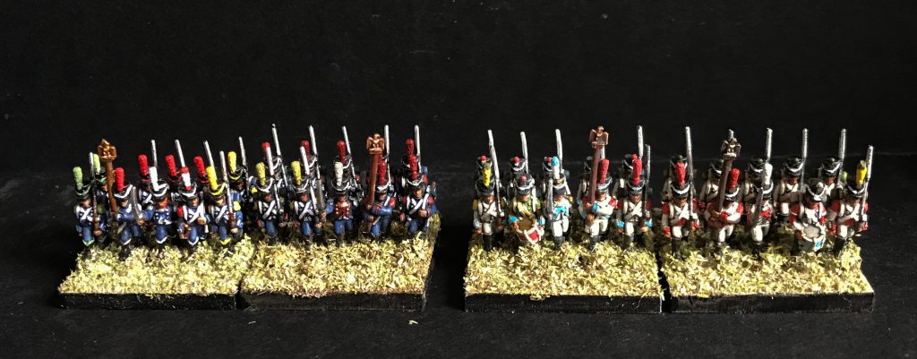 3mm isn't quite the smallest scale that anyone plays Napoleonics in, but its the smallest where your individual models are still distinct enough to have individual national identities. Beyond this, you're into the world of appropriately coloured blocks - a depth of Napoleonic grognardism I sadly don't have experience with. 3mm games are likely to play out major high-level engagements where a single base may represent a full Battalion (or several) or even a Regiment.