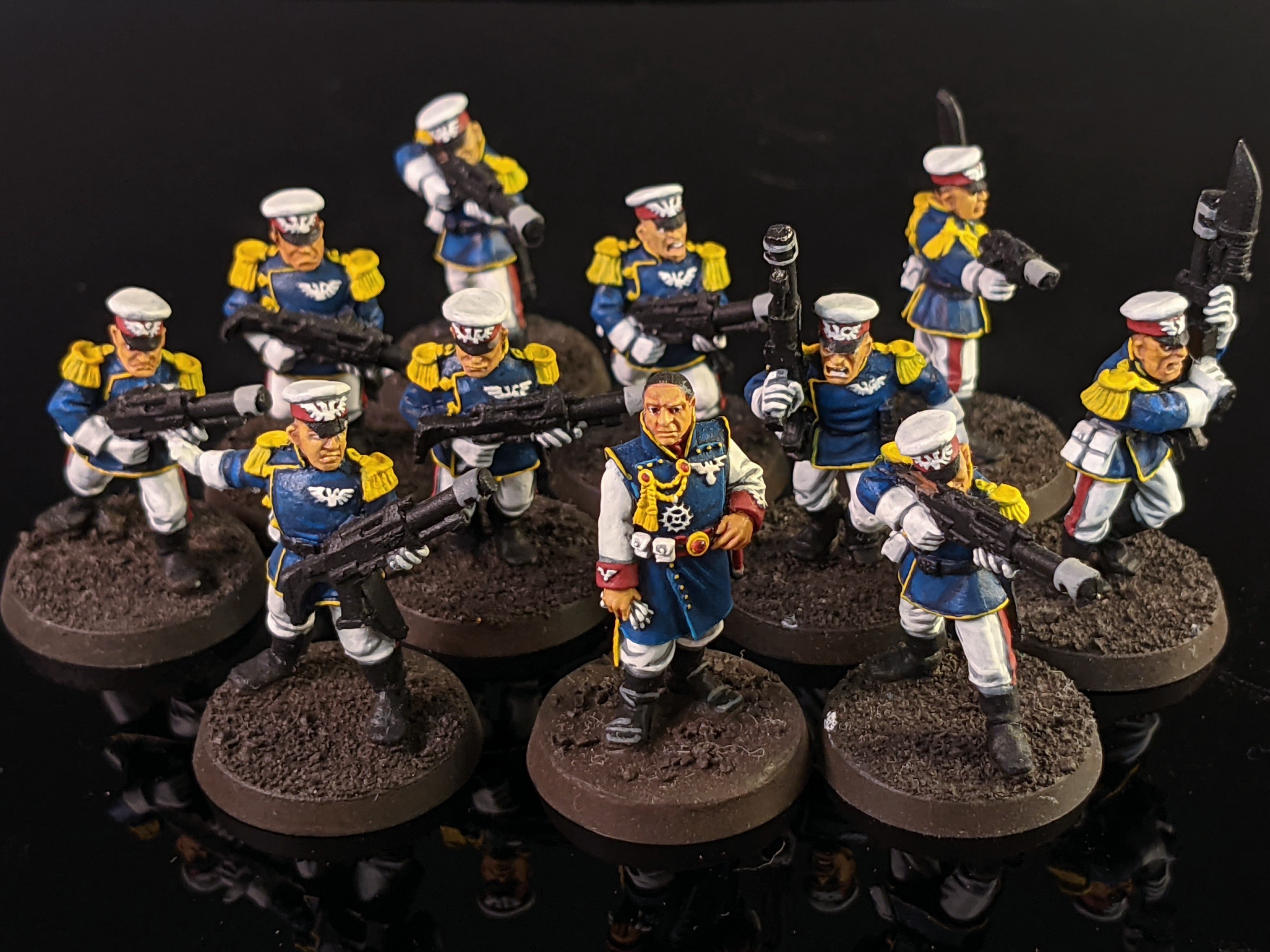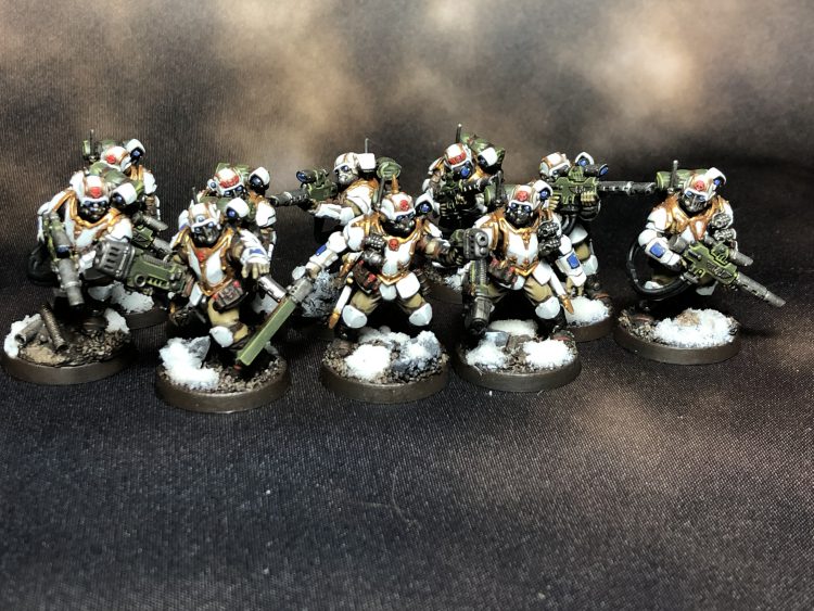- A pair of Miltarum Tempestus Command Squads sporting plasmas and meltas, respectively