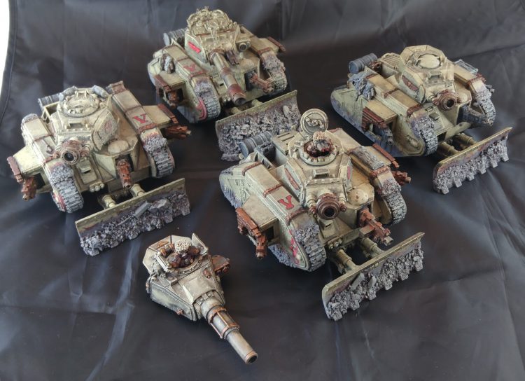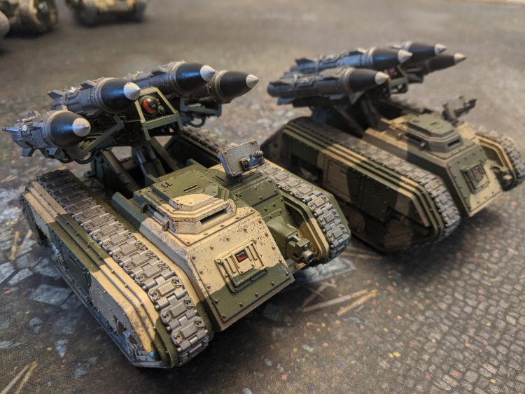 Basilisks [7 PL, 125pts] . Basilisk: Earthshaker Cannon, Heavy Bolter, Stat Damage (HS)