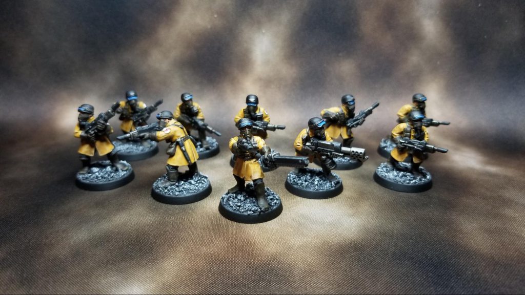 Onto his patrol detachment. Alan’s brought along my second favorite Tempestus Scions regiment: Iotan Gorgonnes. The Gorgonnes are cheeky lads with a