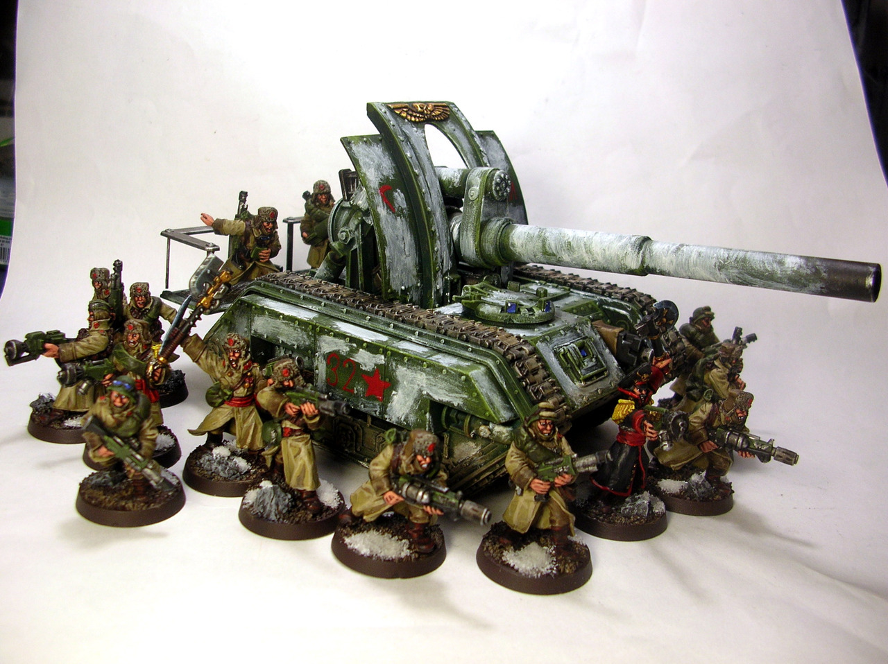 lots of it. Guard is usually aiming to overwhelm the opponent's defenses with the sheer volume of firepower they can lay down, seize control of the board with their bargain-priced and fast-moving infantry, and weather any counterattack the opponent can muster by dint of the sheer number of targets they present. A few more specialized or more expensive options are frequently seen addressing specific roles (though even their super heavies have competitive price tags) but a list made up of