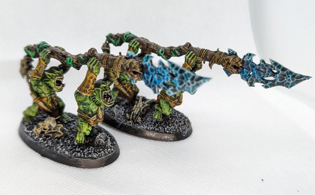 As discussed under the Wardokk, you can make this unit surprisingly tough for a fully nude Orruk, and they get a cheeky little +1 to wound on the charge which means in Icebone they straight up out-damage Gutrippaz for a 15 point discount. I know comparing something favourably to Gutrippaz isn’t lighting the world on fire, but these are totally acceptable Battleline and can actually go and fight things.