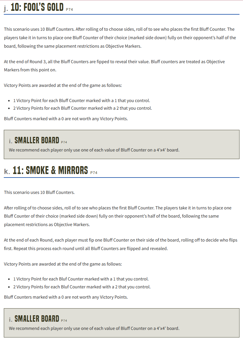 Now that the low key most important bit of the whole article is over, I can stop writing… sorry, get into the depths of playing Fool’s Gold or Smoke and Mirrors, the two scenarios that use Bluff Counters at the time of writing. Often, folks find this a difficult proposition, memory issues aside. Not only do you have to know your own strategy in advance, based on what you expect the other player to do, but you need to be able to react to your opponent’s decisions.