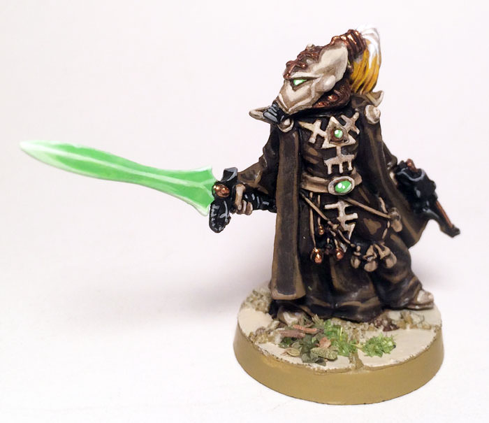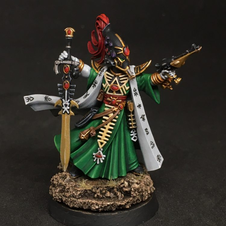 Eldrad Ulthran [8 PL, 155pts]: 0. Smite, 1. Guide, 2. Doom, 4. Executioner, Armour of Last Runes, Ghosthelm, Runes of the Farseer, Shuriken Pistol, Spiritlink, Staff of Ulthamar, Witchblade