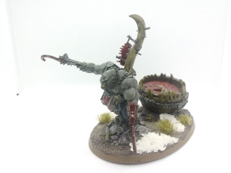 - Artefact: Splatter-cleaver – Pick a melee weapon, at the end of the combat phase, when you successfully deal damage with this weapon heal D3 wounds for each friendly unit within 12″. An insanely powerful artifact to round this out, healing is plentiful in the army but you want to have as much to spread around the field as you can.
