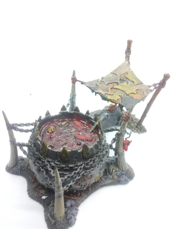 When the pot is full an Ogor Hero within 6" of it can empty it to heal D3 wounds to all Ogor units within 36" of the pot (roll for each unit). This is pretty great with all of your multiwound models although it doesn't let you bring dead models back to life. Really think about where you place your pot to get maximum use out of it.